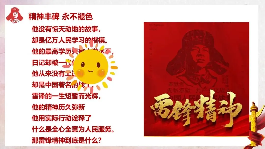 学雷锋日班会《雷锋精神永不褪色的丰碑》教学设计