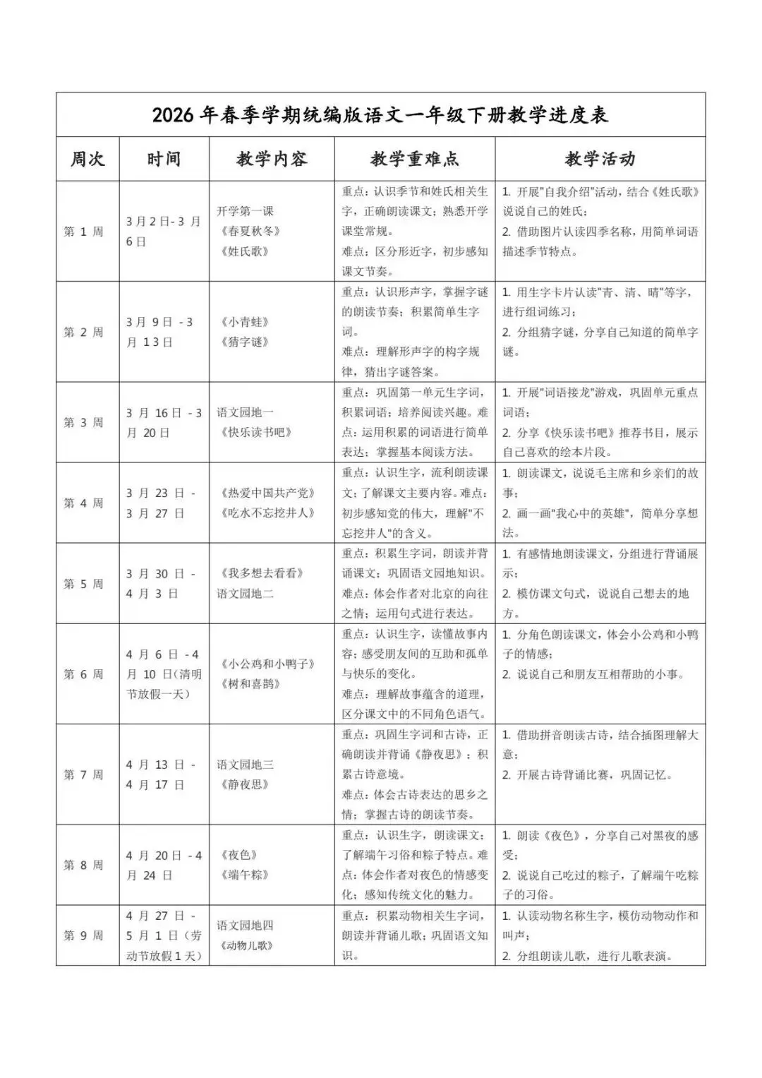 嗨,我是君君妈妈!今日分享2026年春《一年级下册语文课件教案+教学计划+教学进度表合集》根据新版教材内容编写,电子版可编辑可打印。全套资料包持续更新,包括核心素养课件教案、大单元教学课件教案、教学计划、教学进度表等。