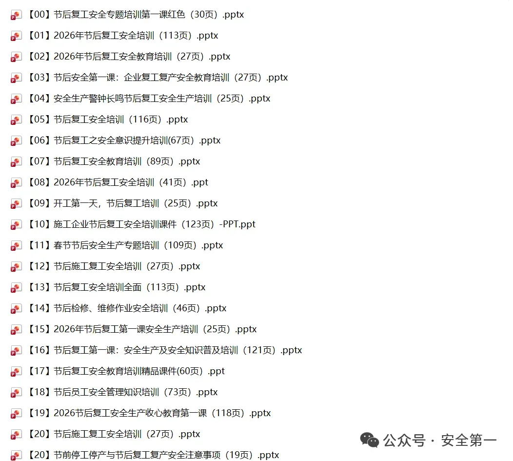 小安整理60篇2026年春节节后复工复产安全精品PPT及文档!陆续上传,供大家参考借鉴!减少您大费周折找资料的时间!