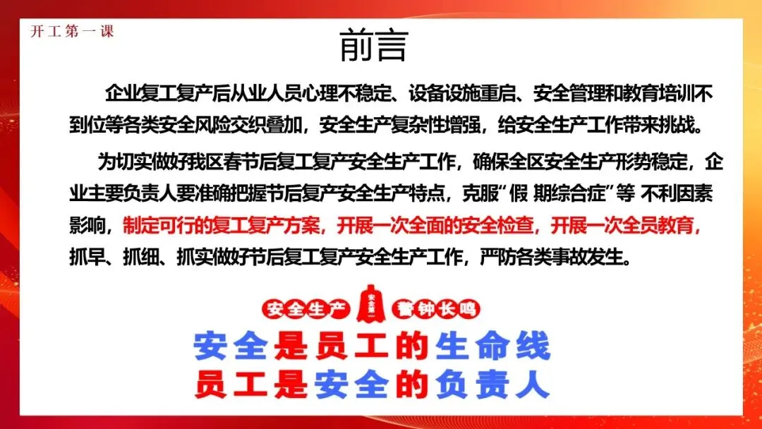 新品出炉!2026年工贸企业春节后复工复产全员安全生产开工第一课