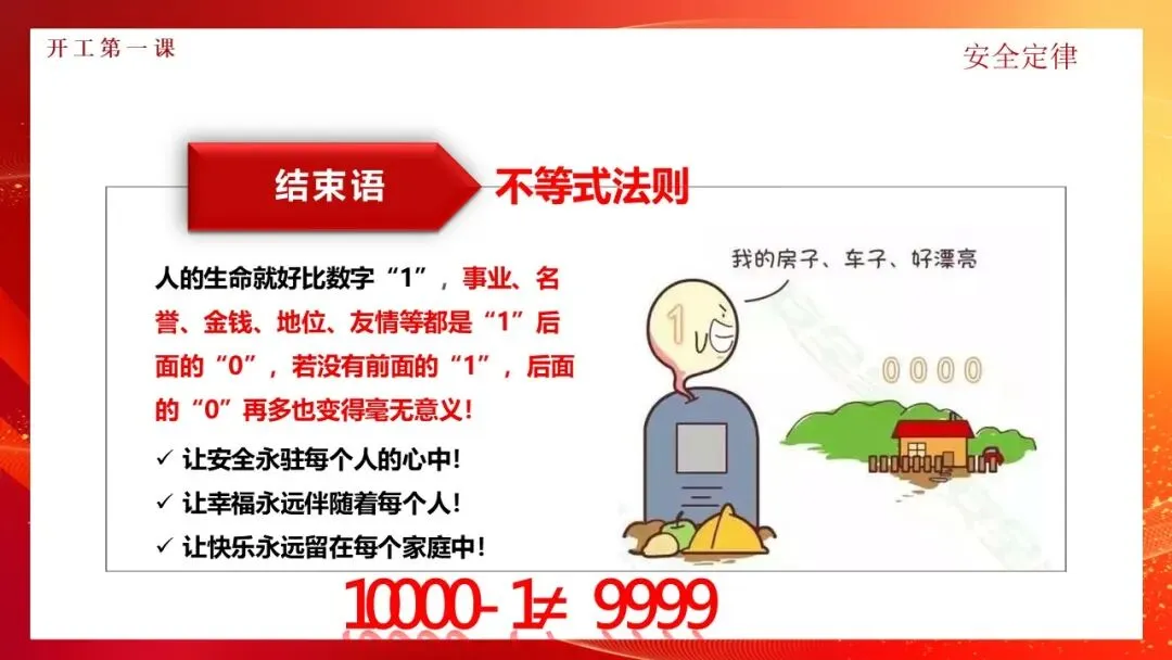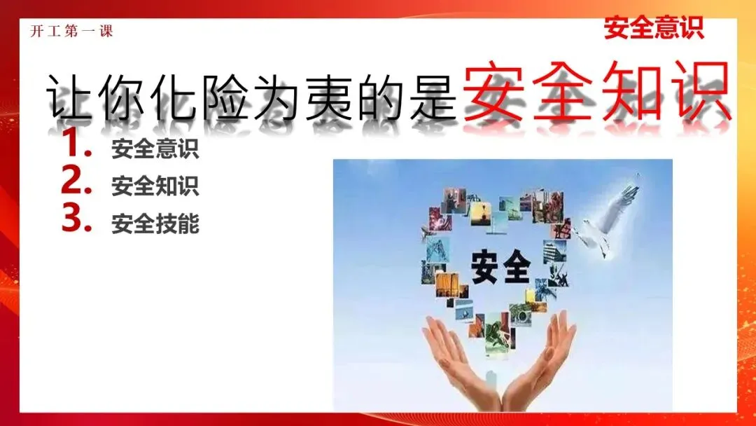 快乐春节!安全为本!一个欢乐、祥和、文明的春节,离不开安全的保障!做好开工安全第一课把好安全第一关为防止出现节后员工安全意识懈怠的情况,加强安全管控,部署节后工作重点,加强全员安全意识的树立,为新一年安全工作开好头、起好步!