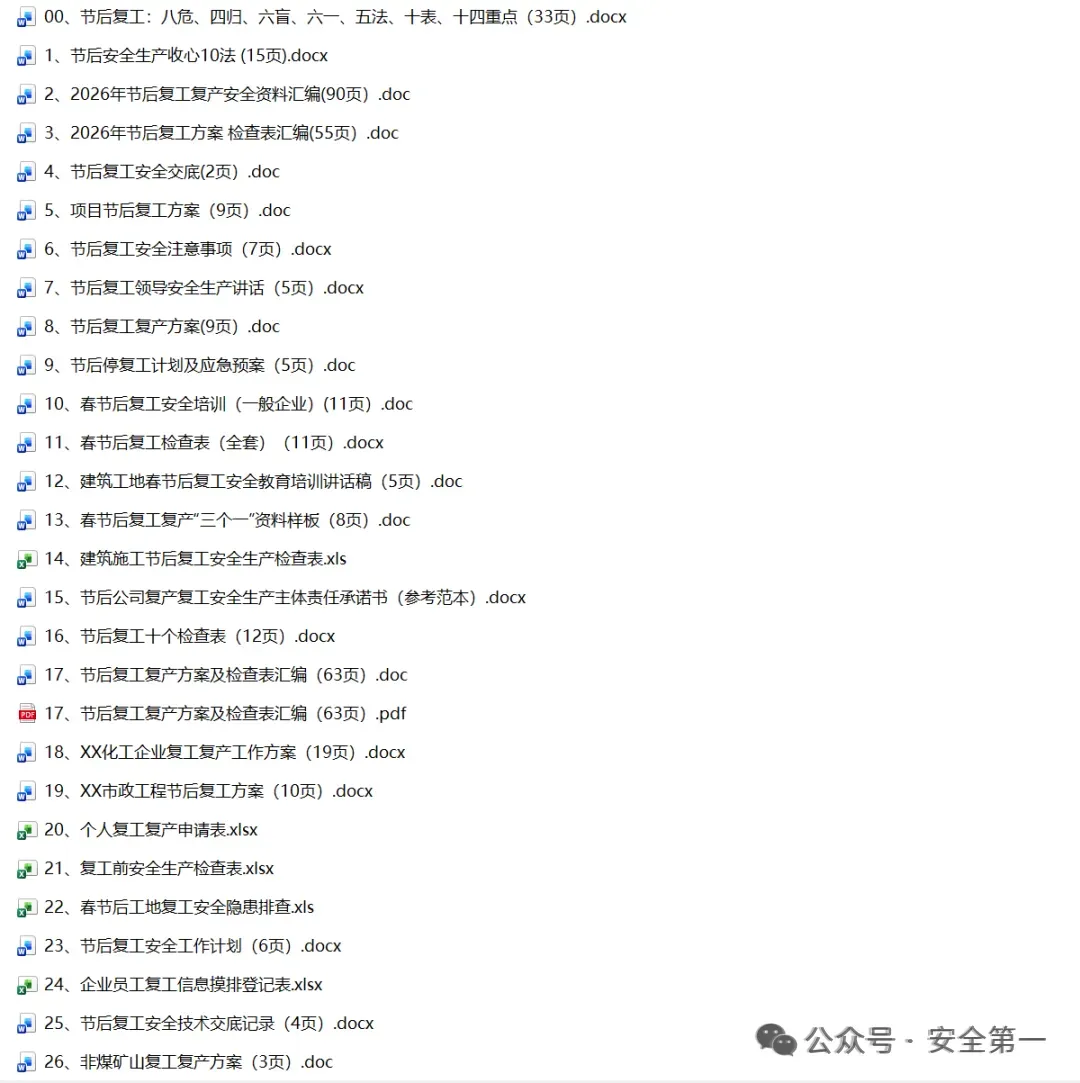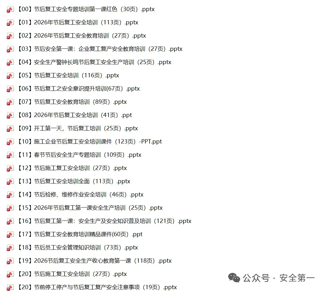 小安整理60篇2026年春节节后复工复产安全精品PPT及文档!陆续上传,供大家参考借鉴!减少您大费周折找资料的时间!
