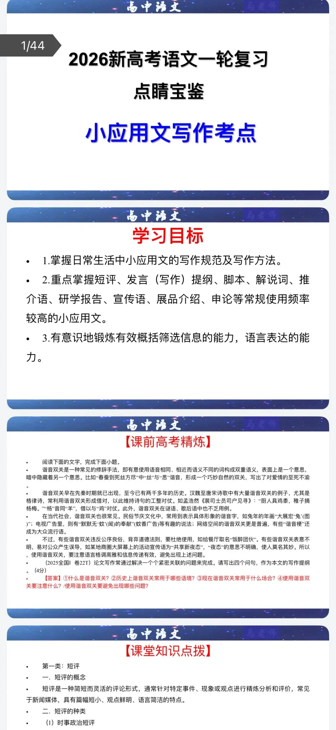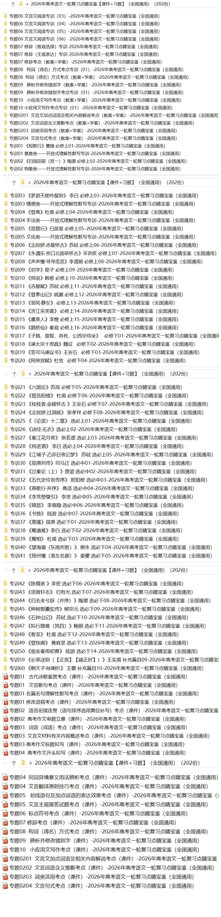 >【2026年高考语文】一轮复习点睛宝鉴课件+专训+教材考点共202份含全解全析(全国通用)(全部完整电子版文档文末有下载方式)