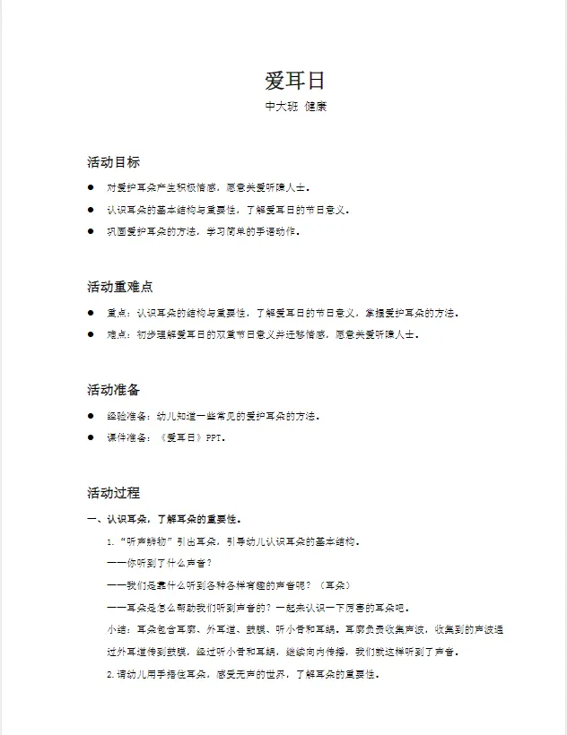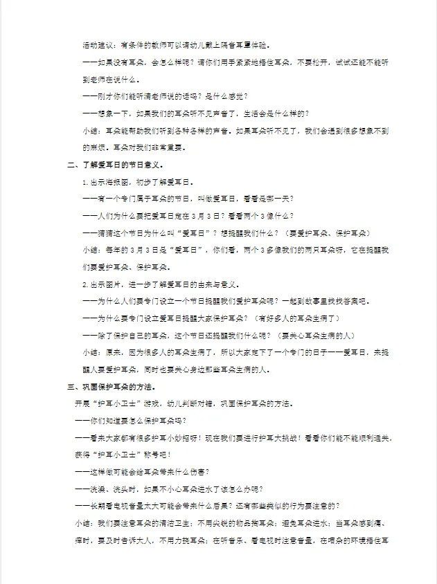 幼儿园中大班_健康_课件《爱耳日》PPT+教案+活动反思