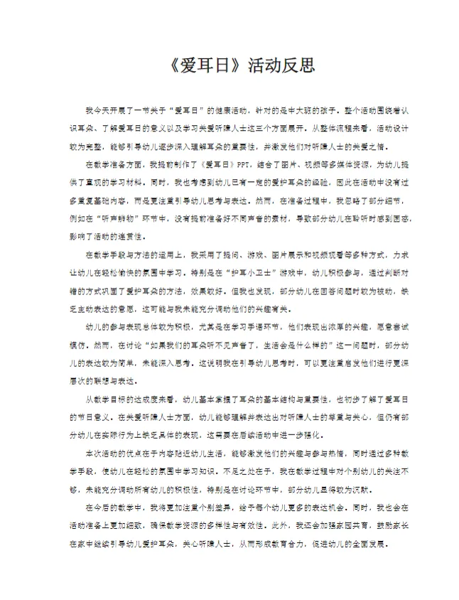 >幼儿园中大班_健康_课件《爱耳日》PPT+教案+活动反思