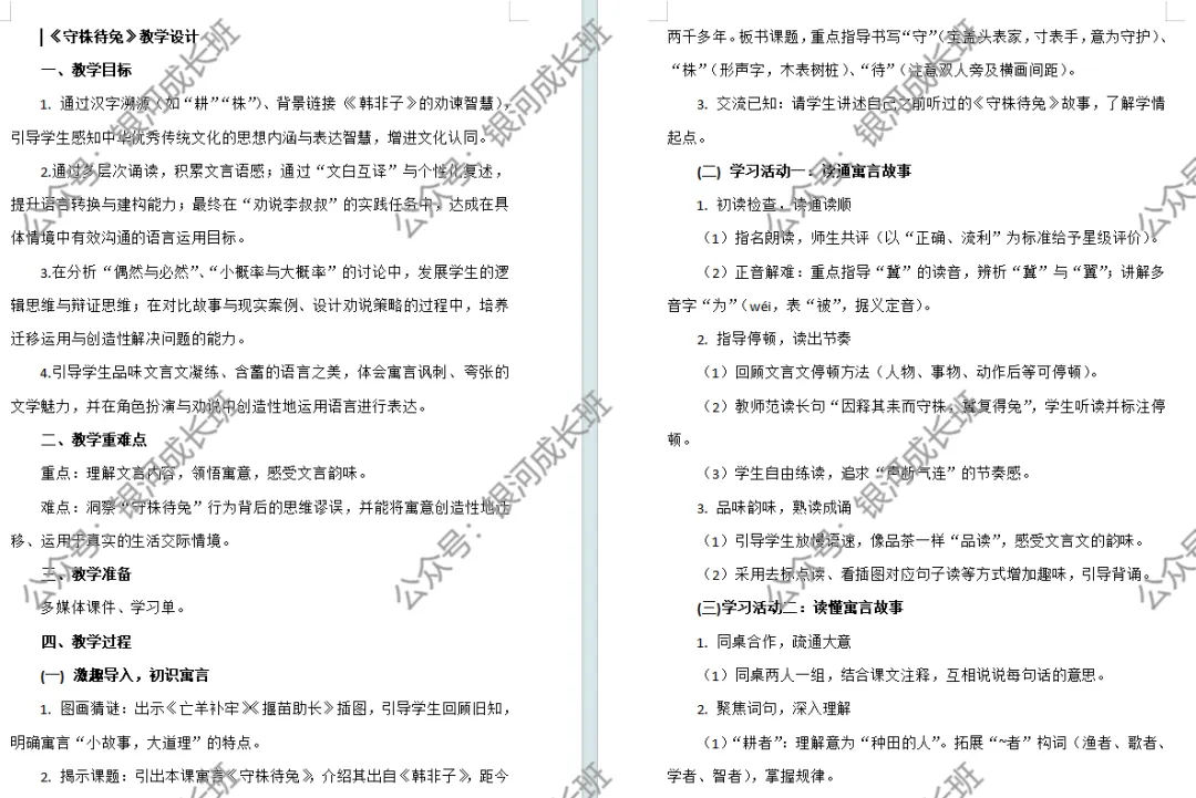 生:因释其耒而守株,冀复得兔。师:读得不错,谁也想读?