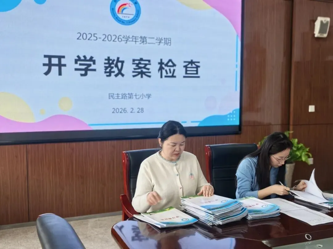 为保障新学期教学质量,2月28日下午,民主路第七小学组织开展了开学教案专项检查。全体教师按要求提前备出两周以上教案,主科教师至少完成一个单元备课。