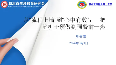 >【培训课件】从“流程上墙”到“心中有数”:把危机干预做到预警前一步(课题《校园心理危机干预的标准化流程与家校协同机制》推进会)