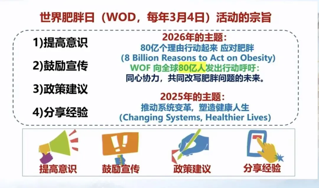 2026年世界肥胖日,向全球80亿人发出行动号召。只要我们携手努力,就能共同改写肥胖的发展趋势。