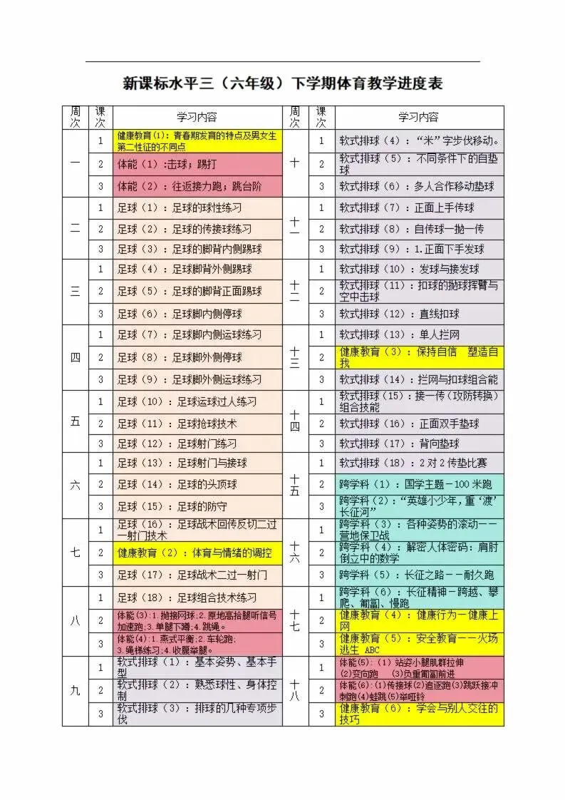 112页新版体育与健康水平三六年级下册教案教学设计word版全册全学期