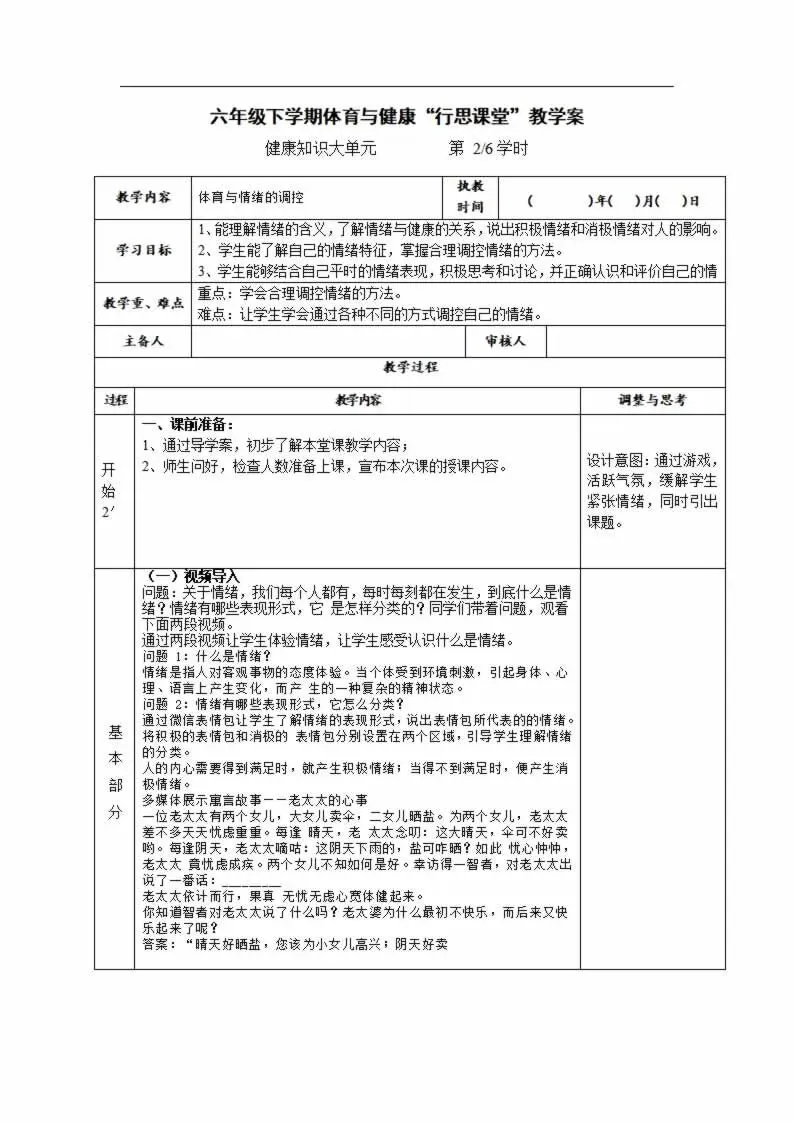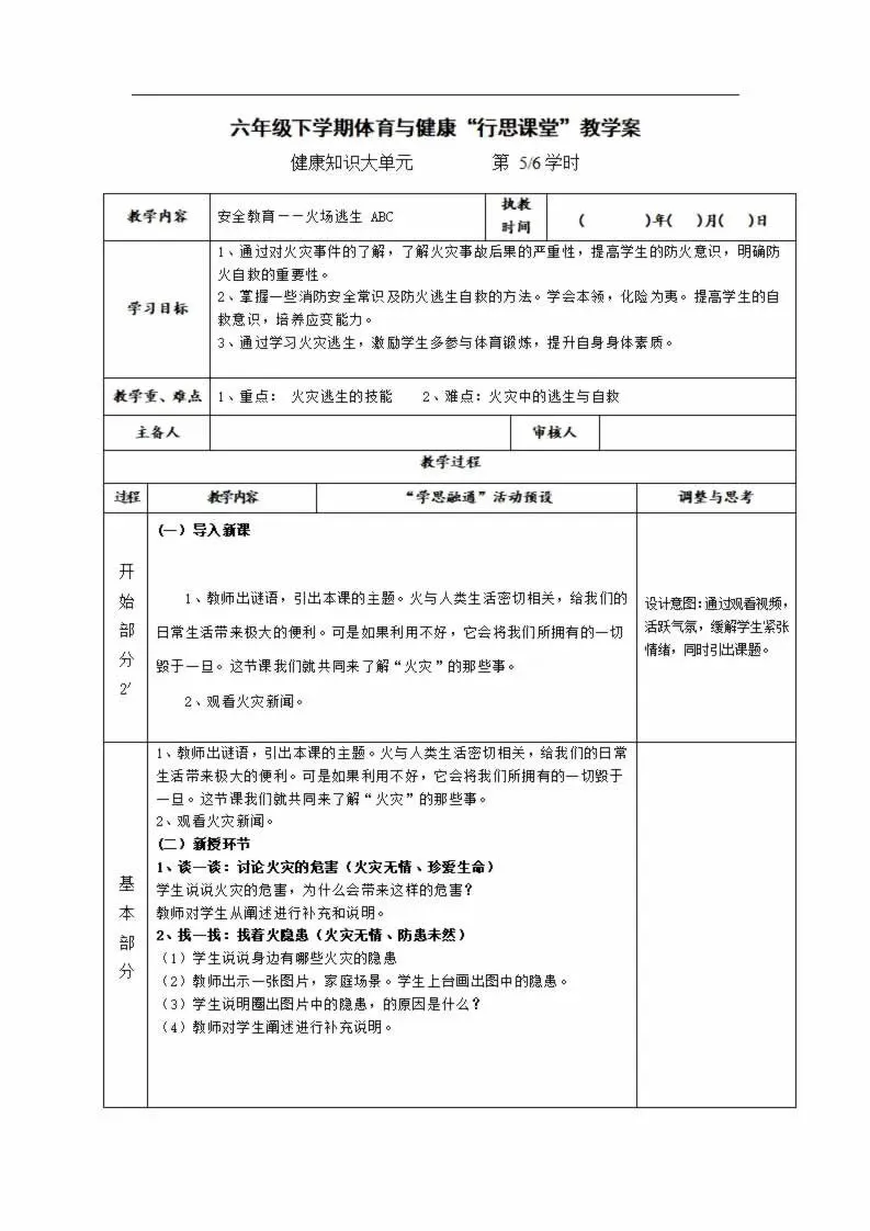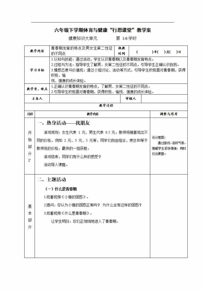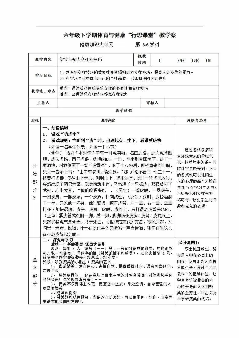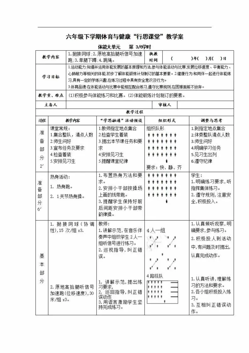 >112页新版体育与健康水平三六年级下册教案教学设计word版全册全学期