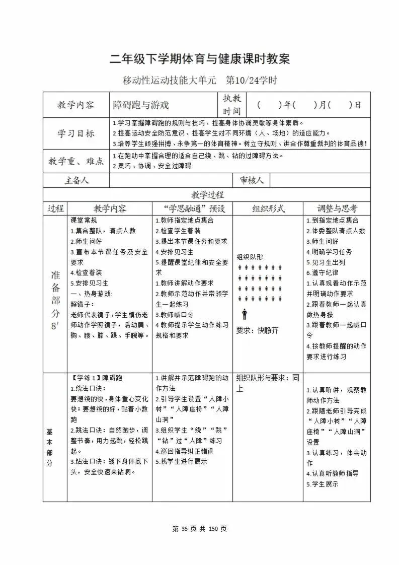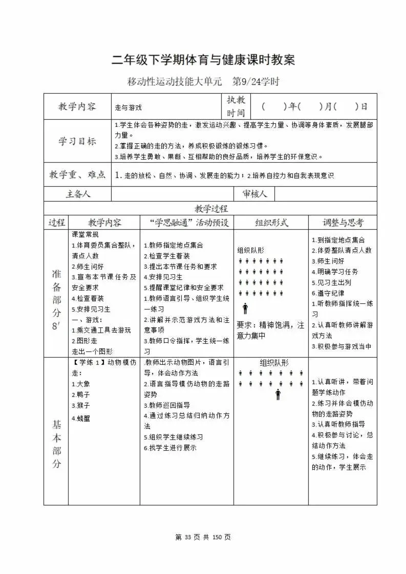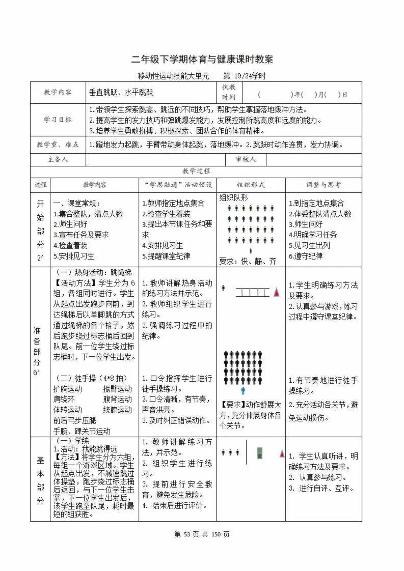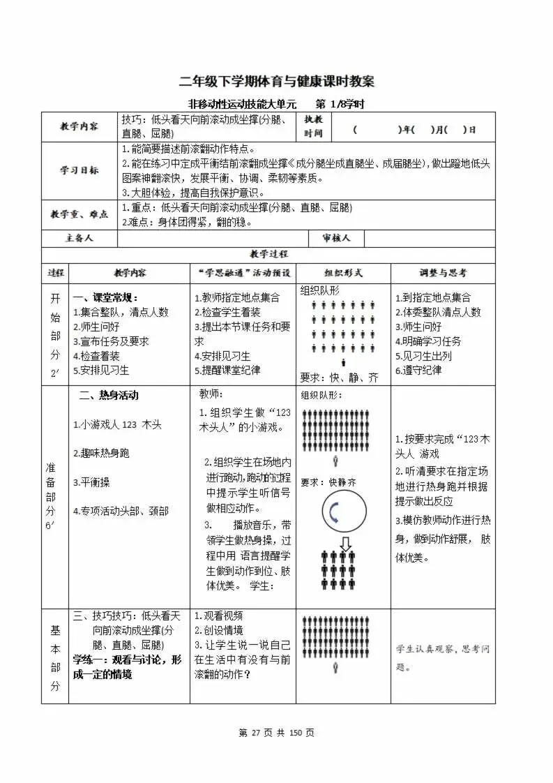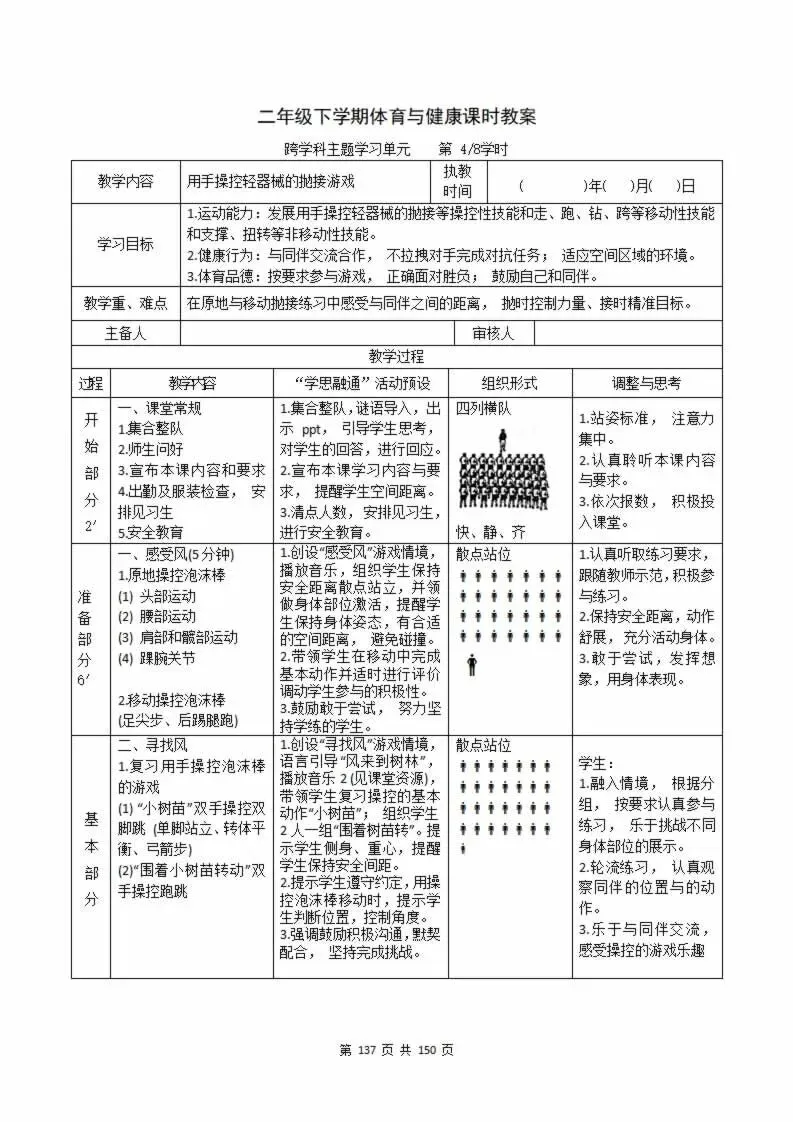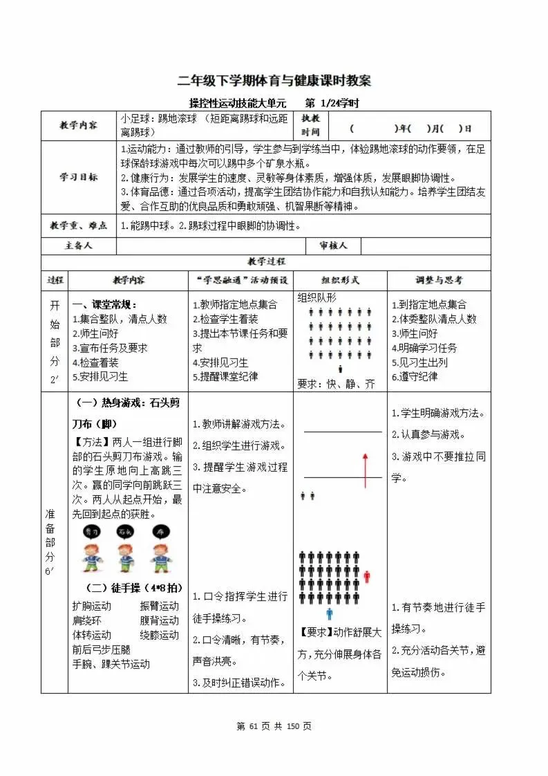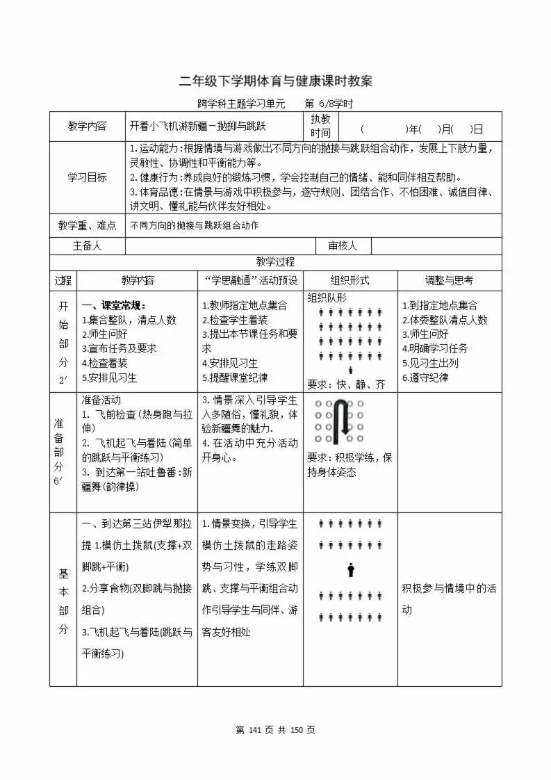 >150页新版体育与健康水平一二年级下册教案教学设计word版全册全学期