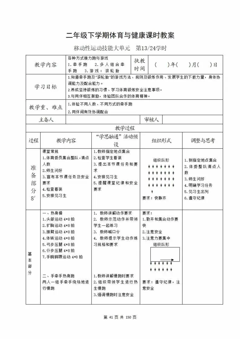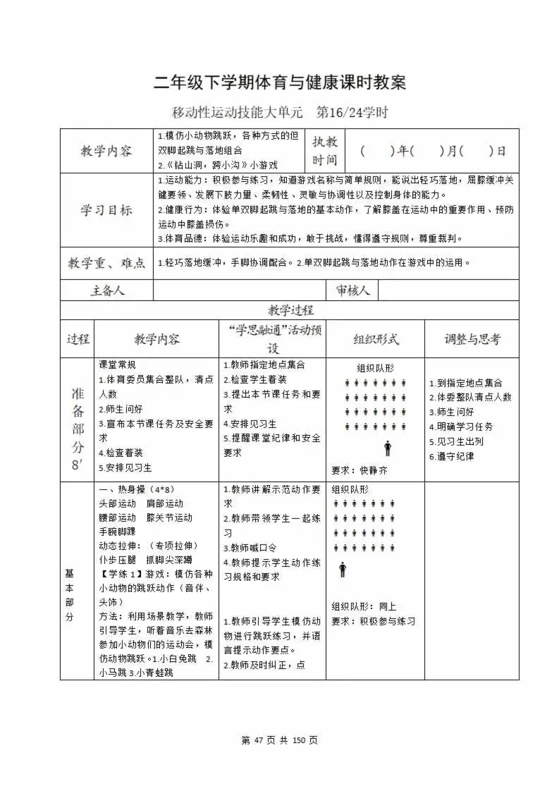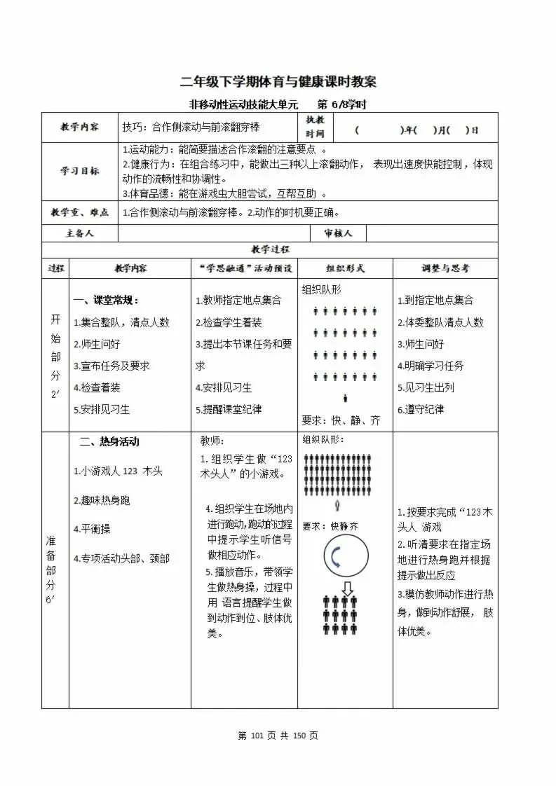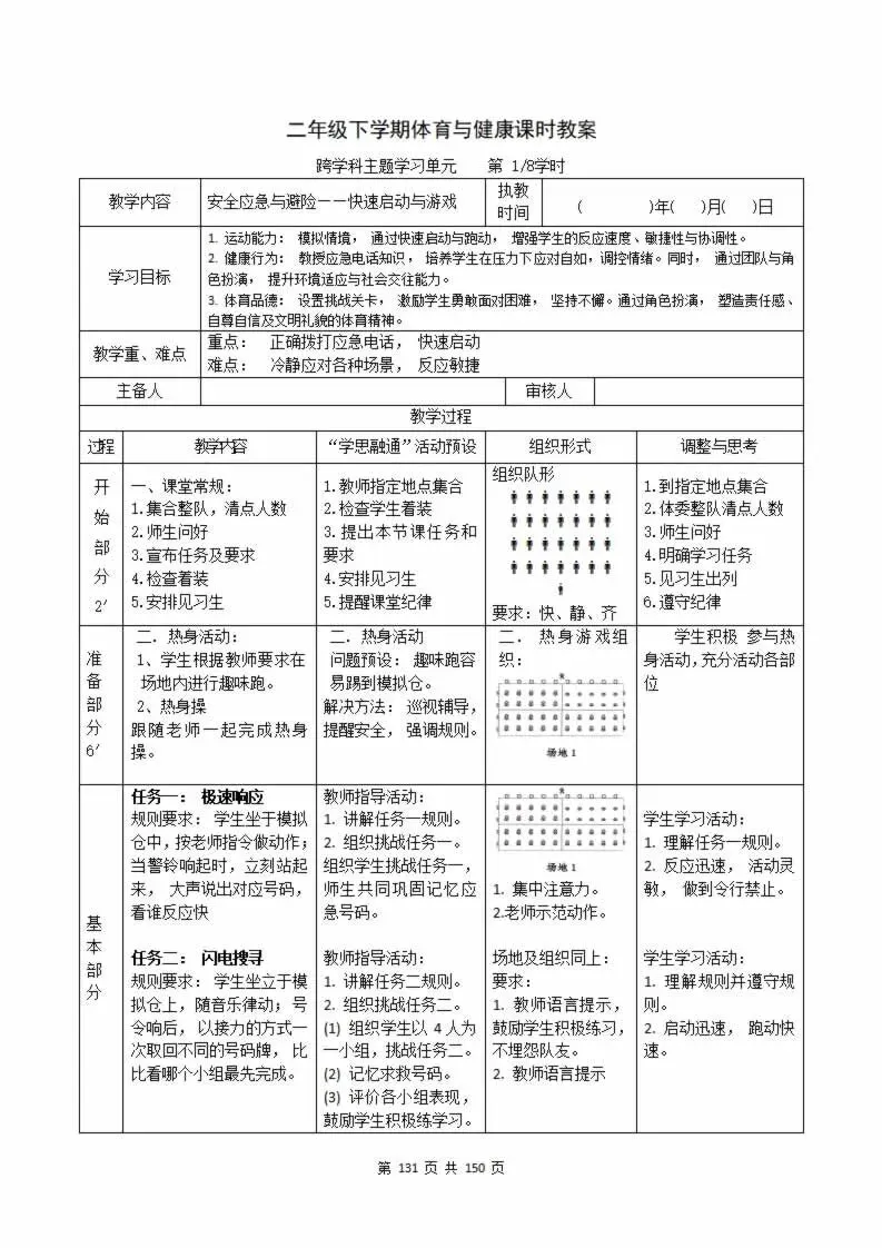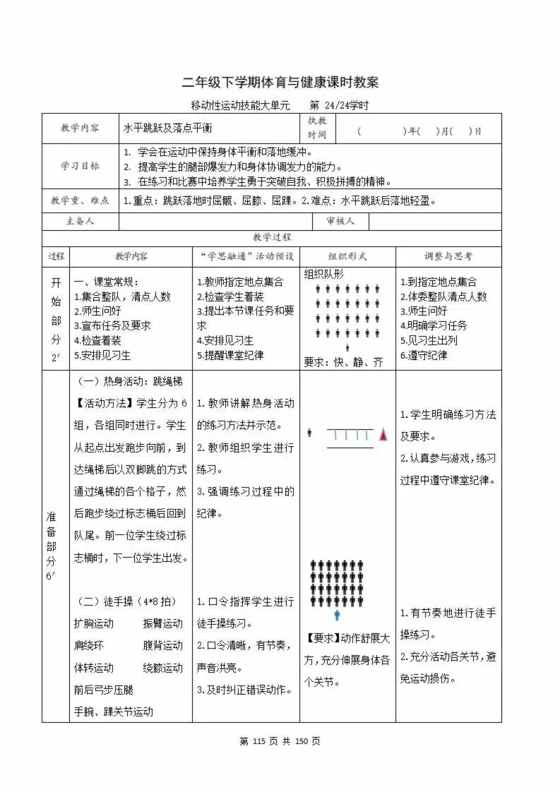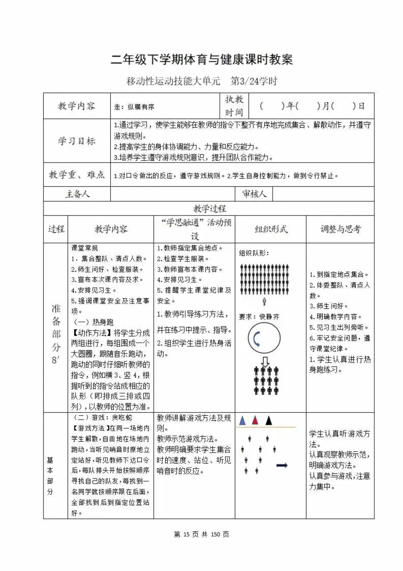 >150页新版体育与健康水平一二年级下册教案教学设计word版全册全学期