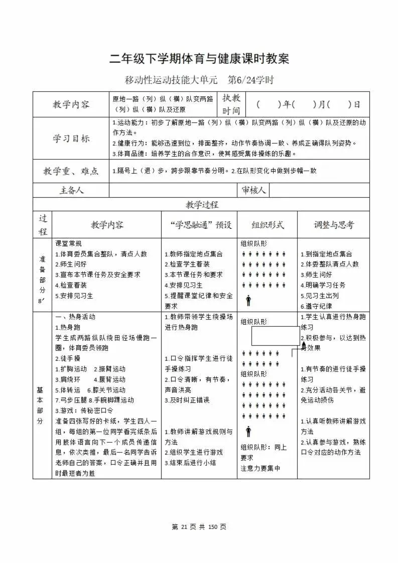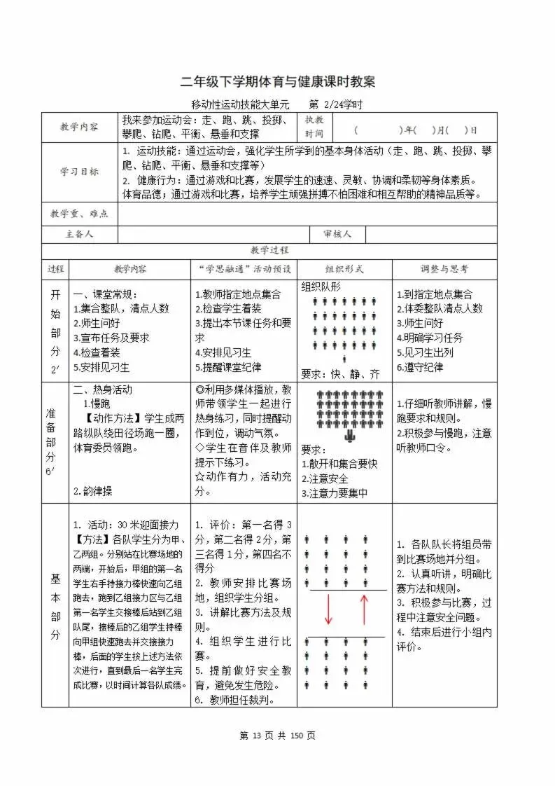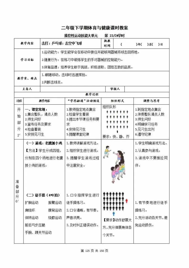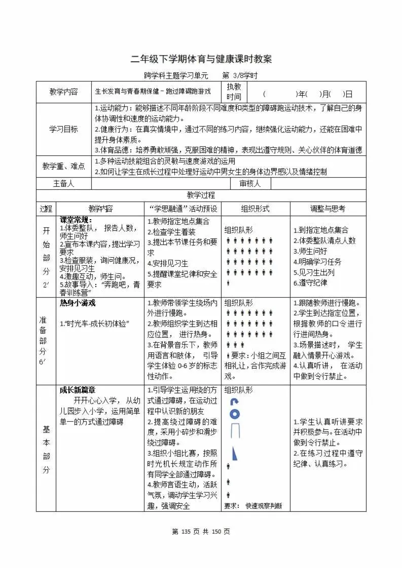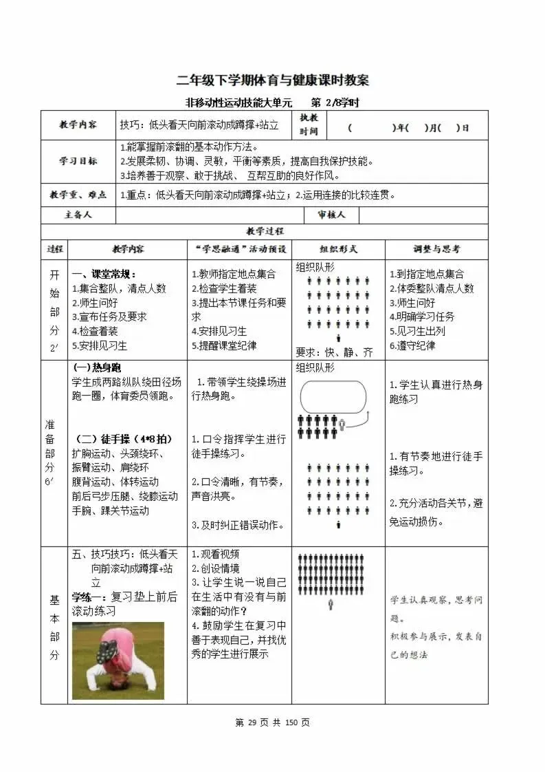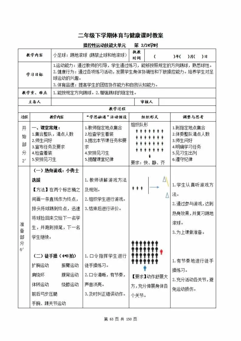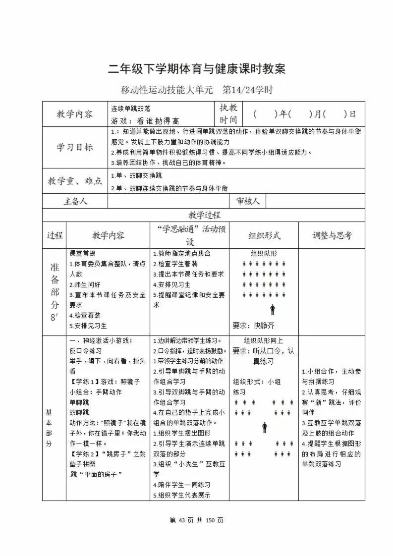 >150页新版体育与健康水平一二年级下册教案教学设计word版全册全学期