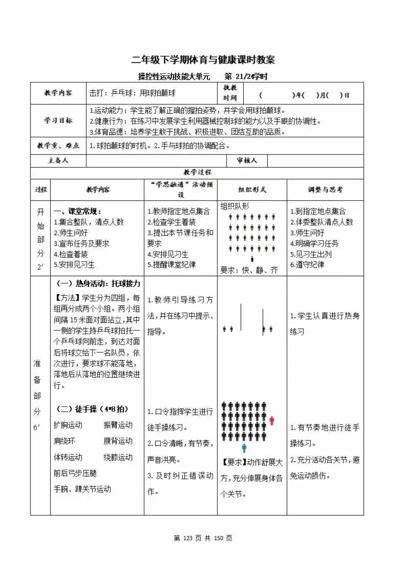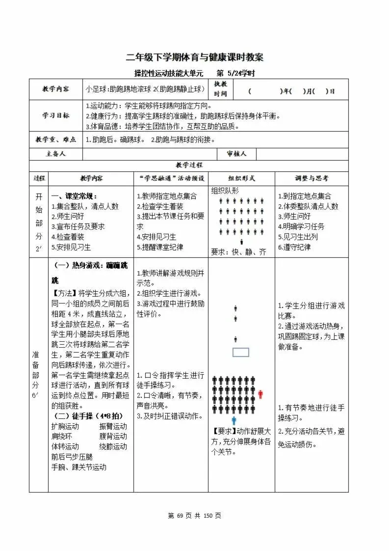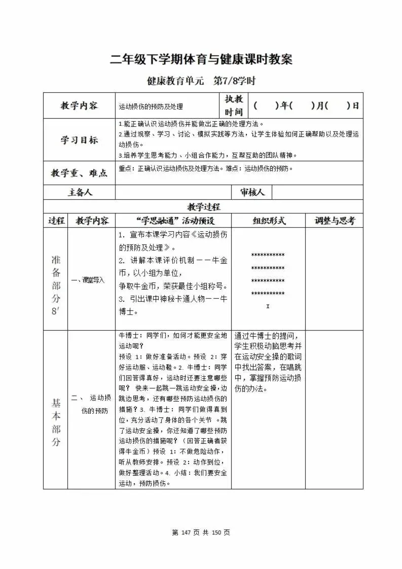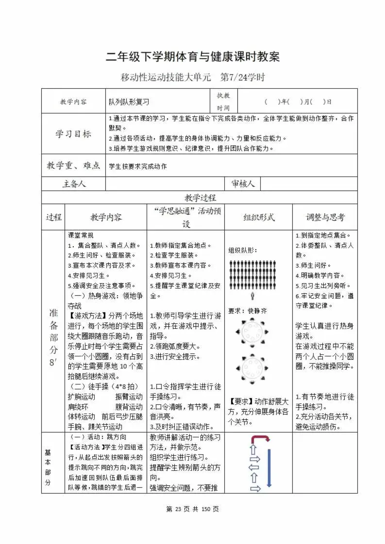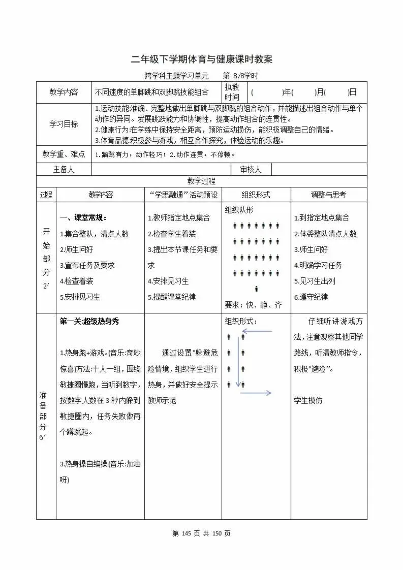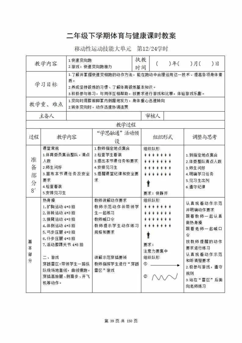 >150页新版体育与健康水平一二年级下册教案教学设计word版全册全学期