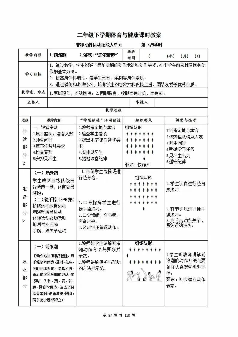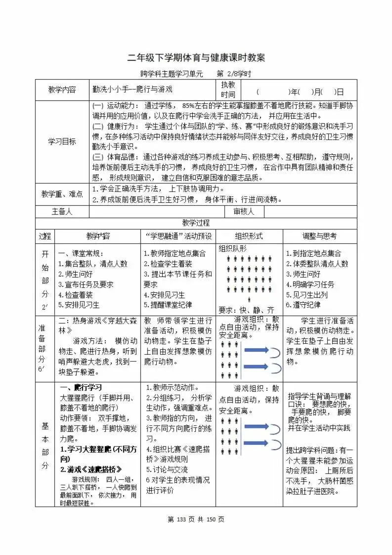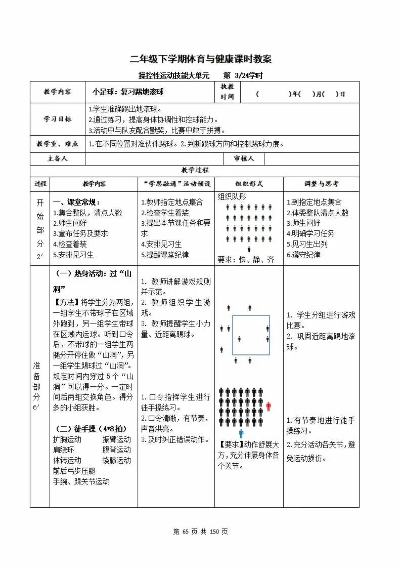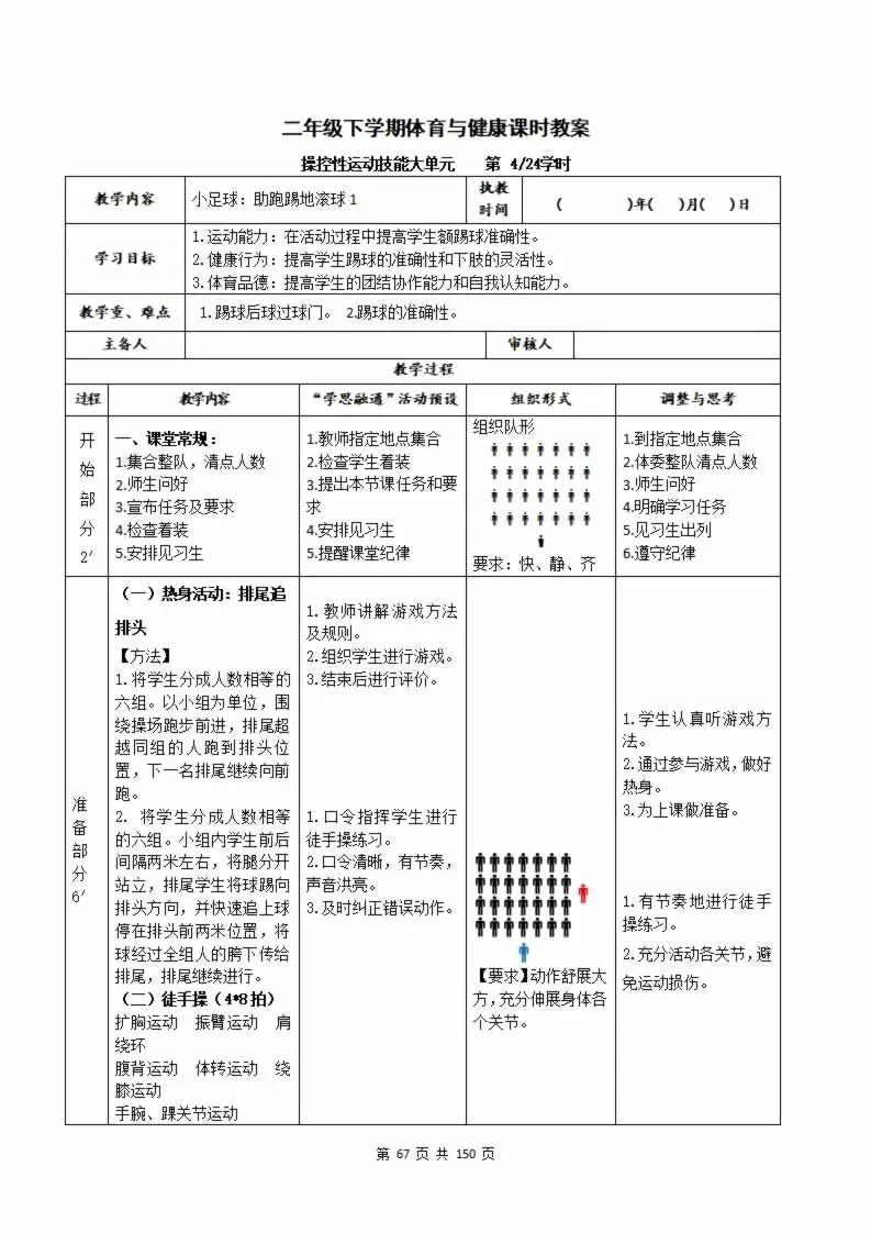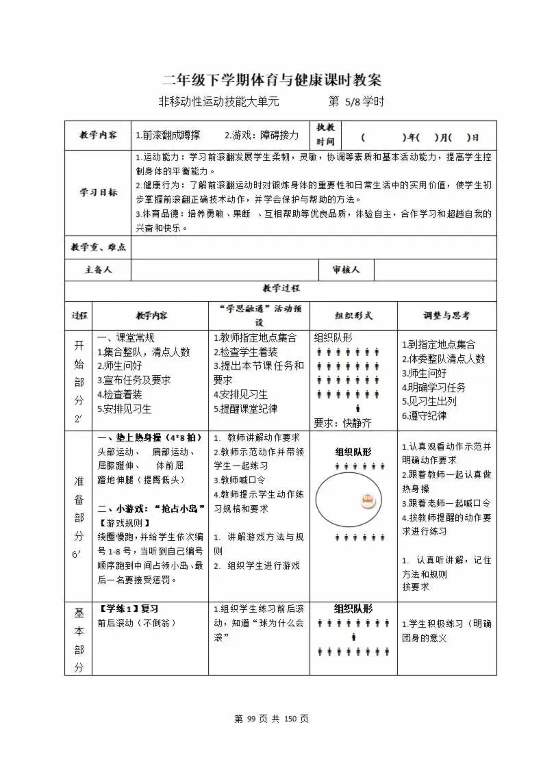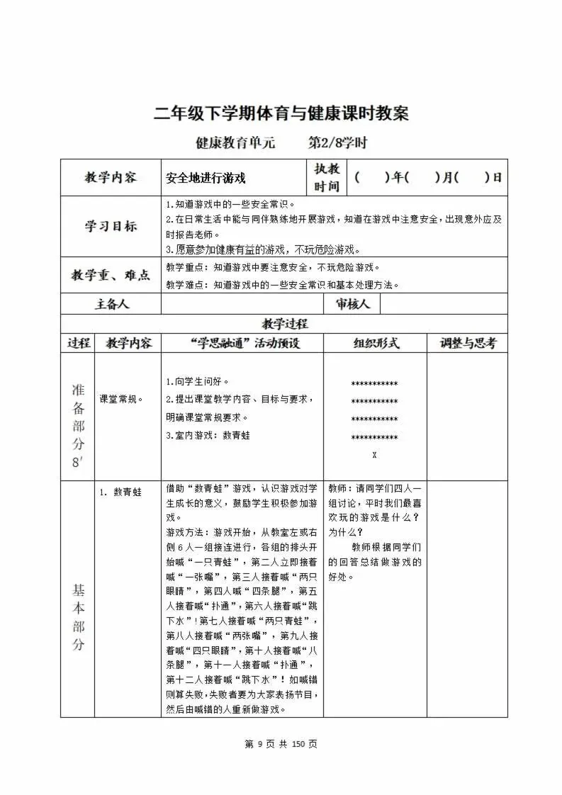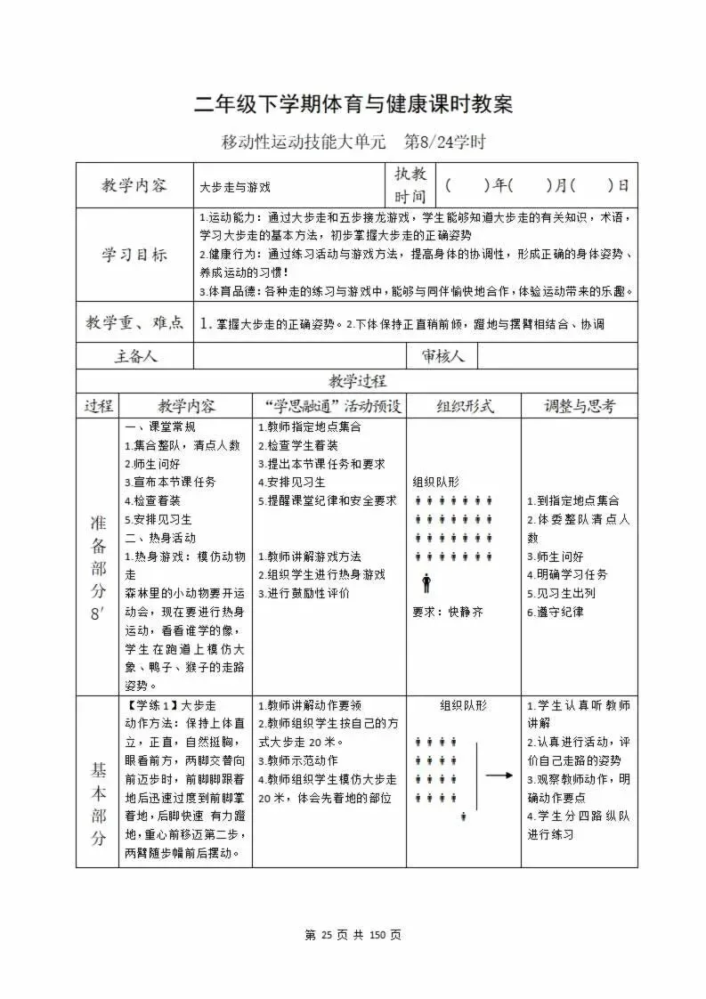 >150页新版体育与健康水平一二年级下册教案教学设计word版全册全学期