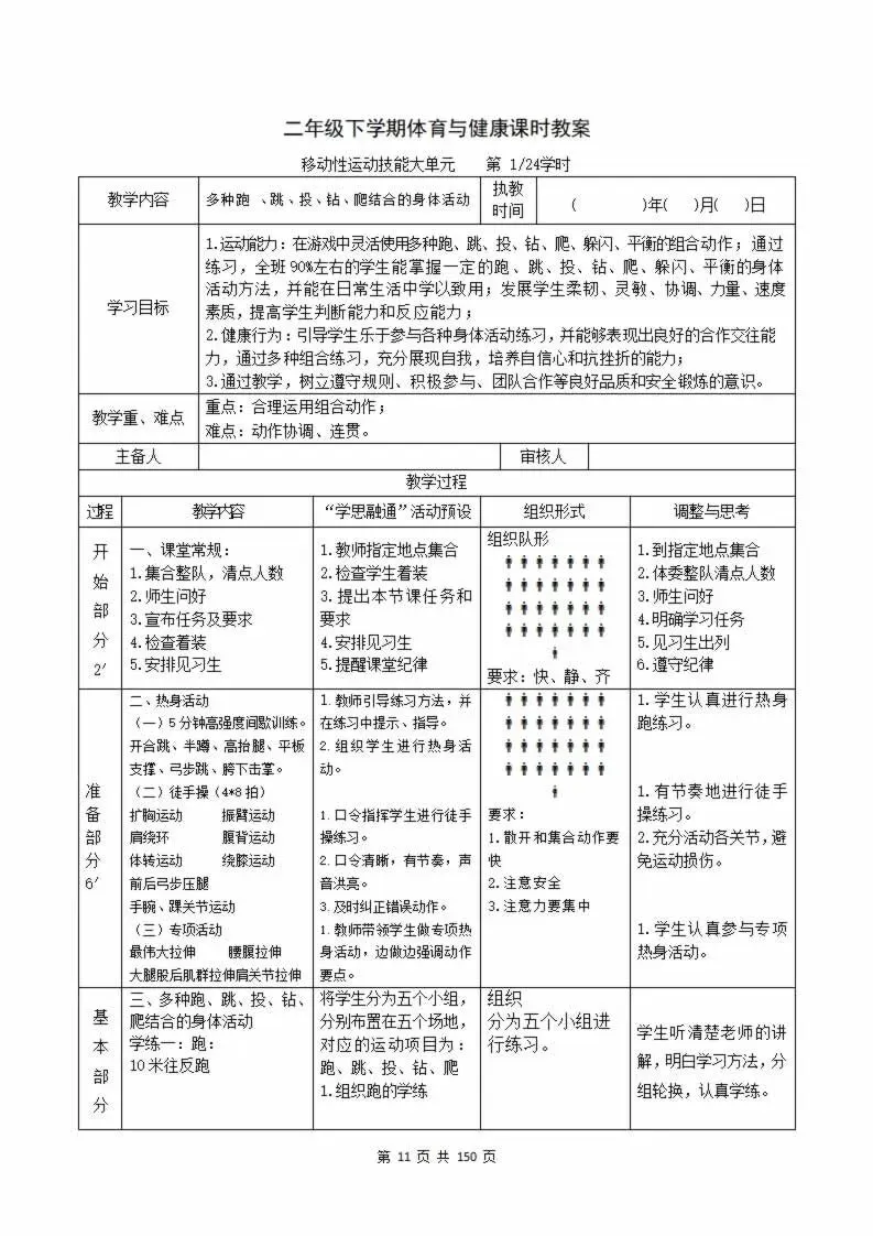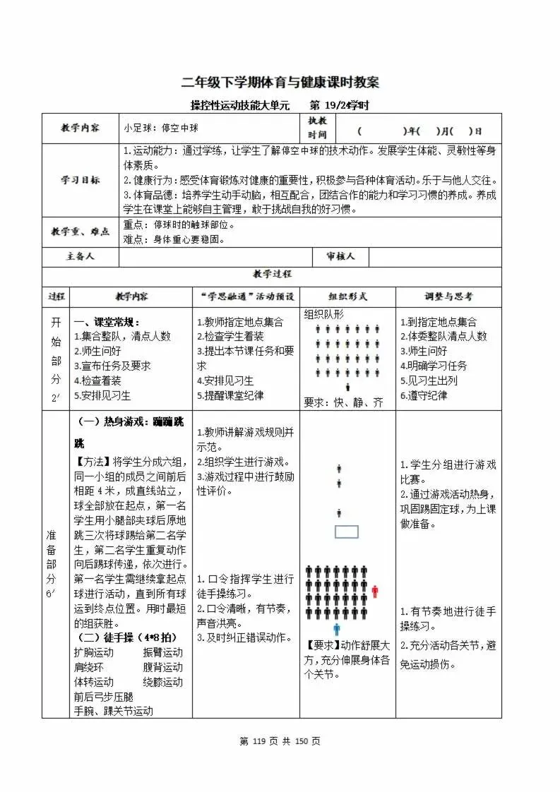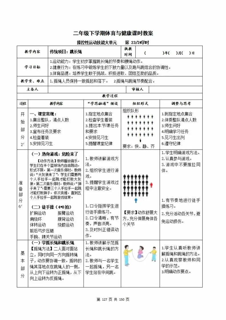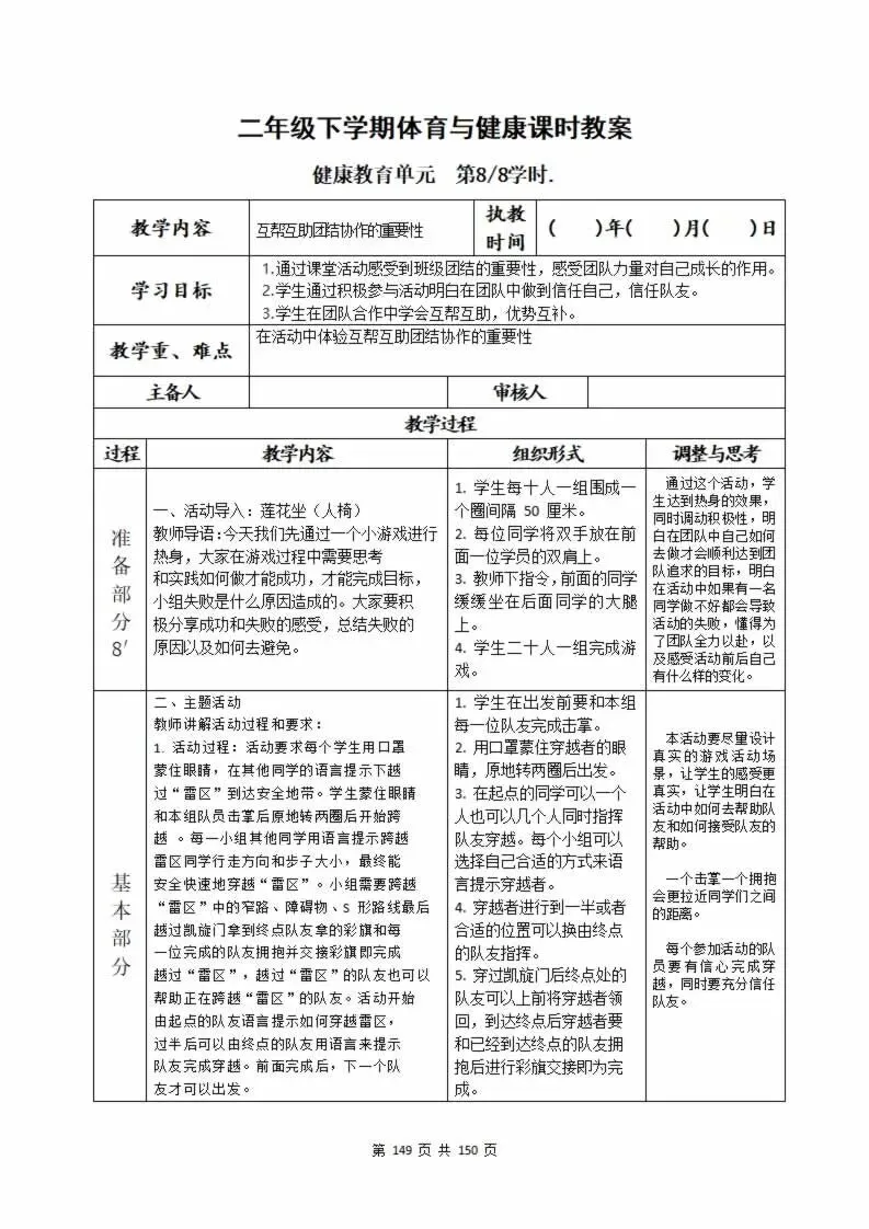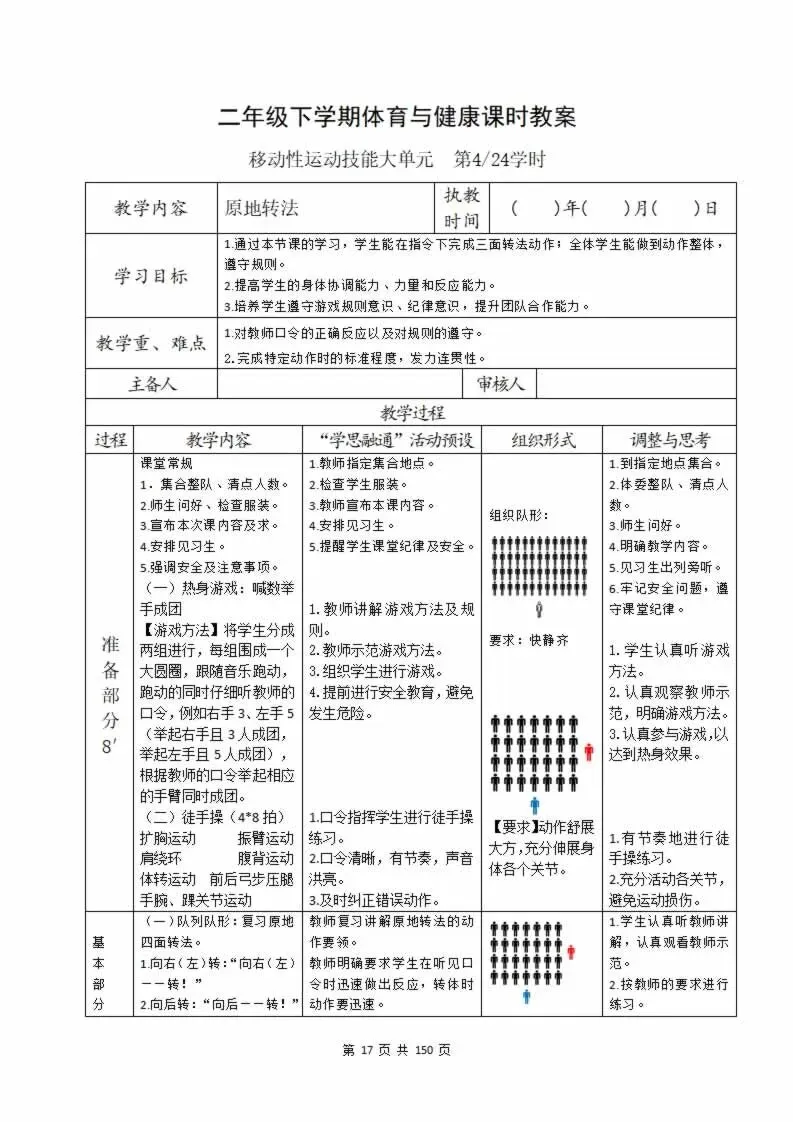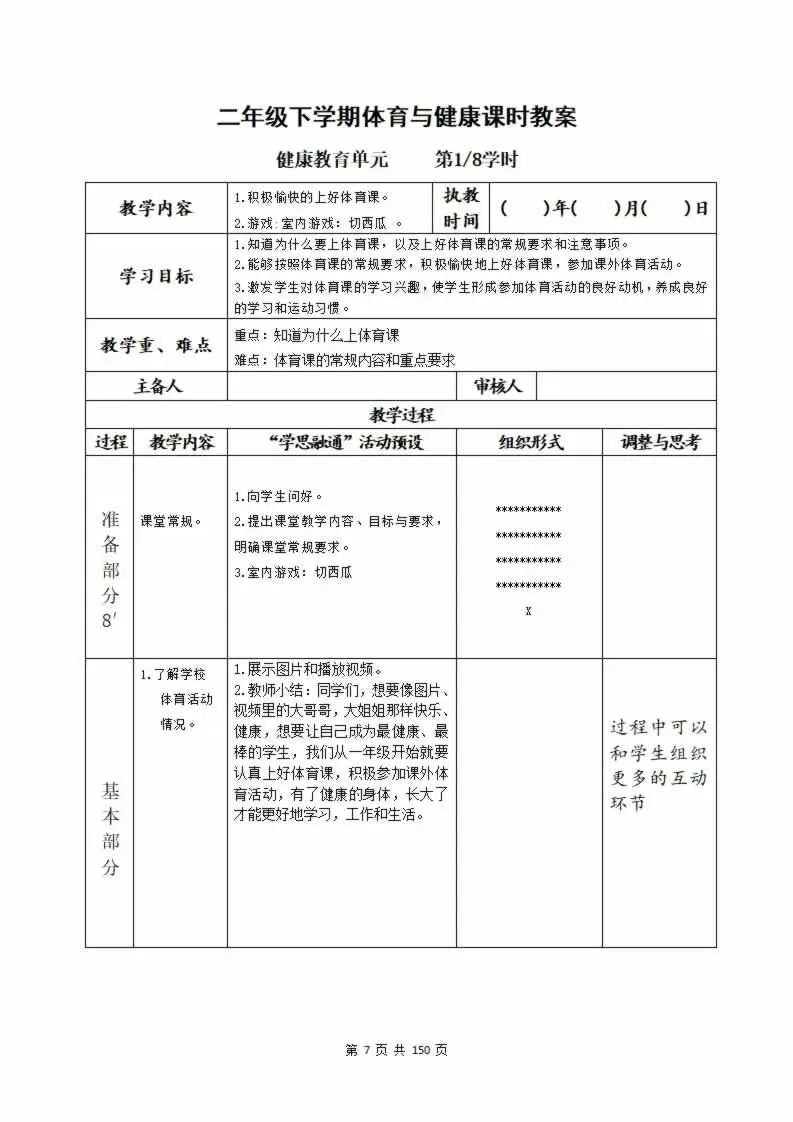 >150页新版体育与健康水平一二年级下册教案教学设计word版全册全学期
