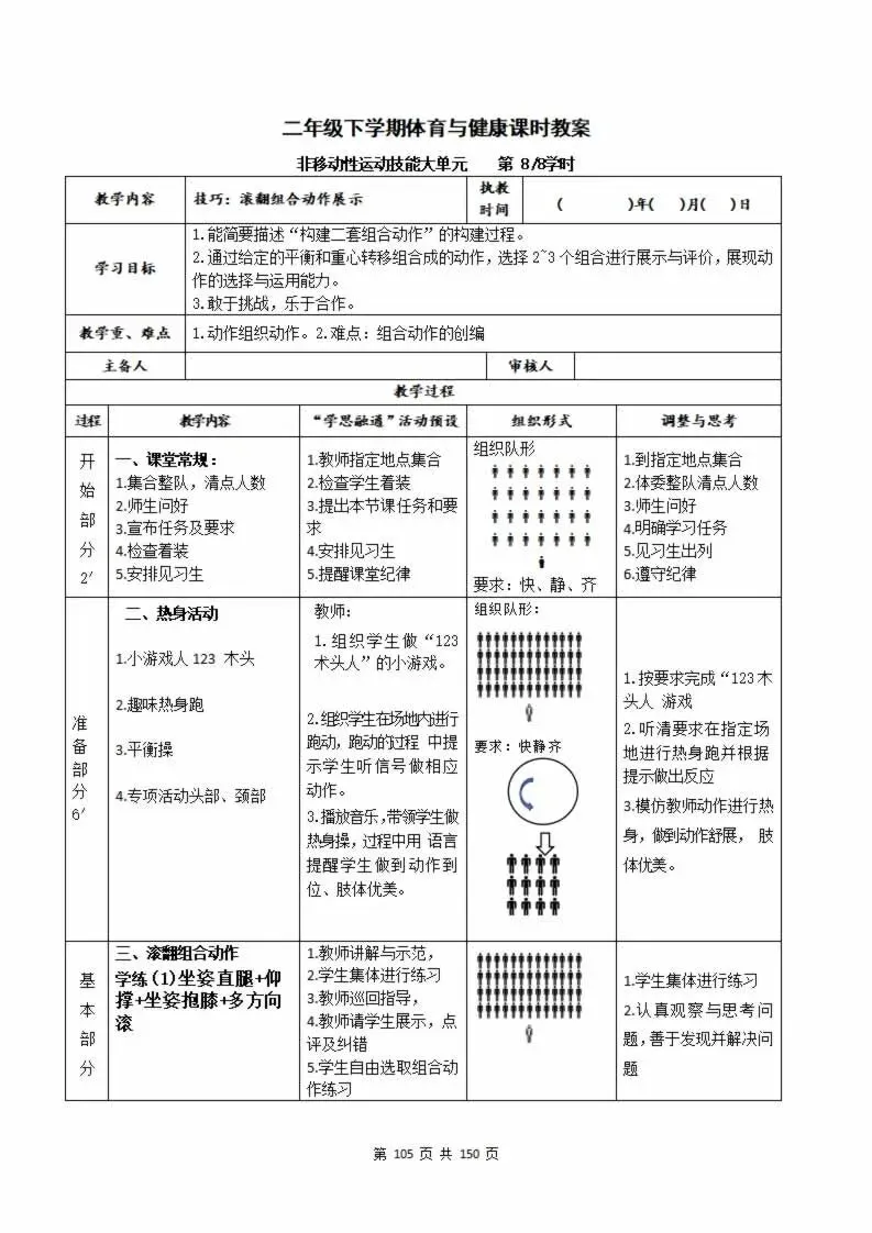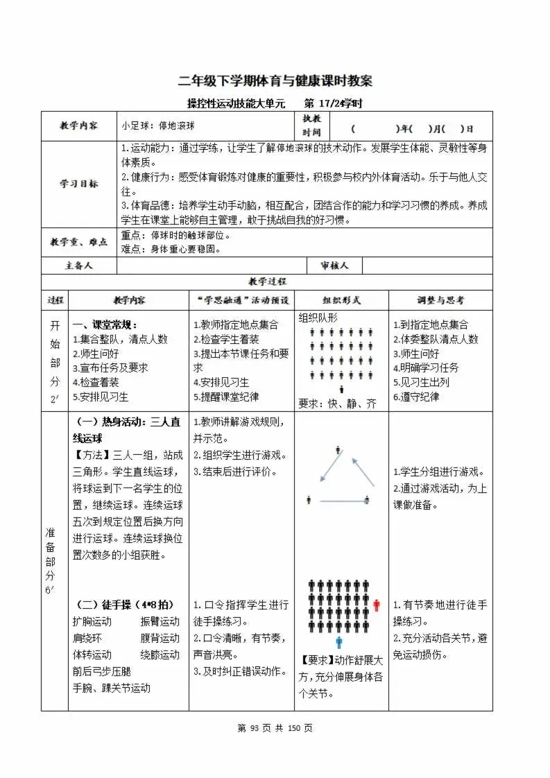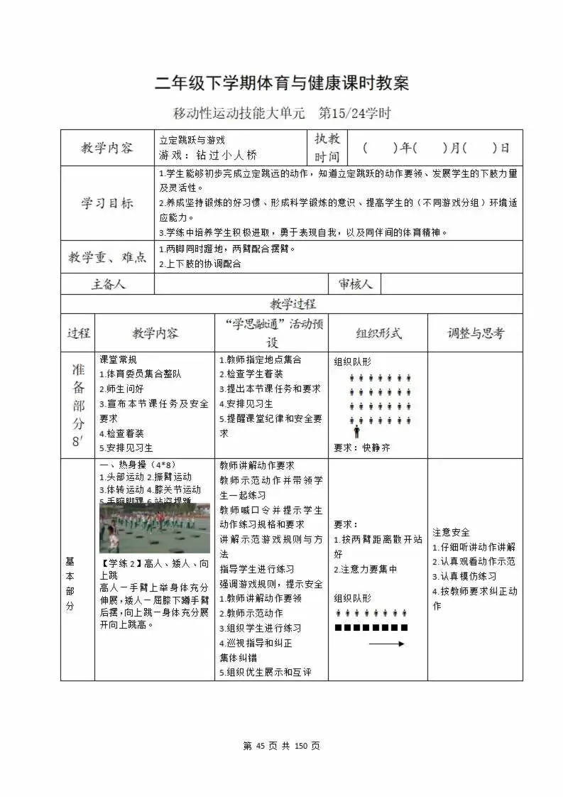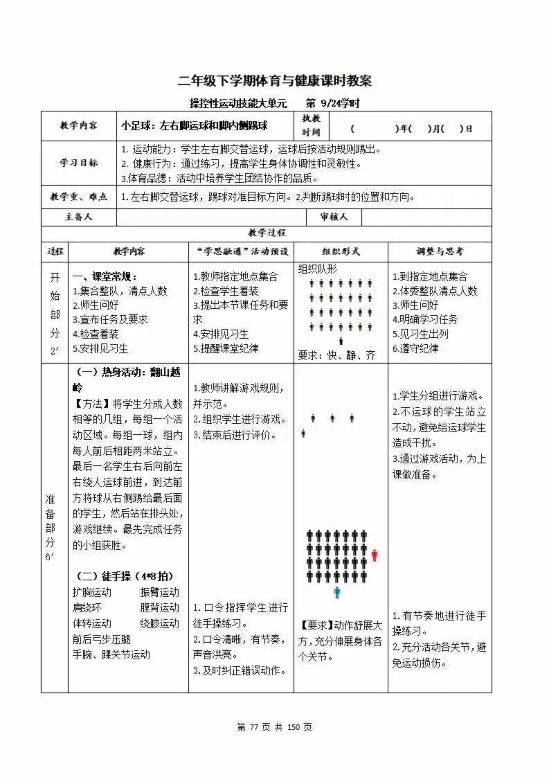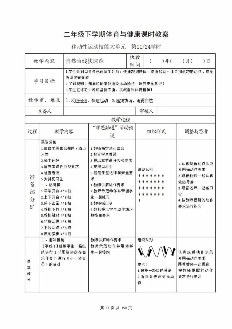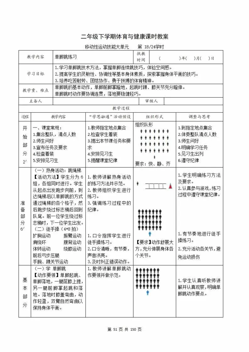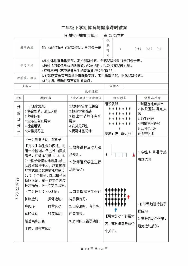 >150页新版体育与健康水平一二年级下册教案教学设计word版全册全学期