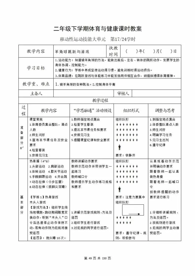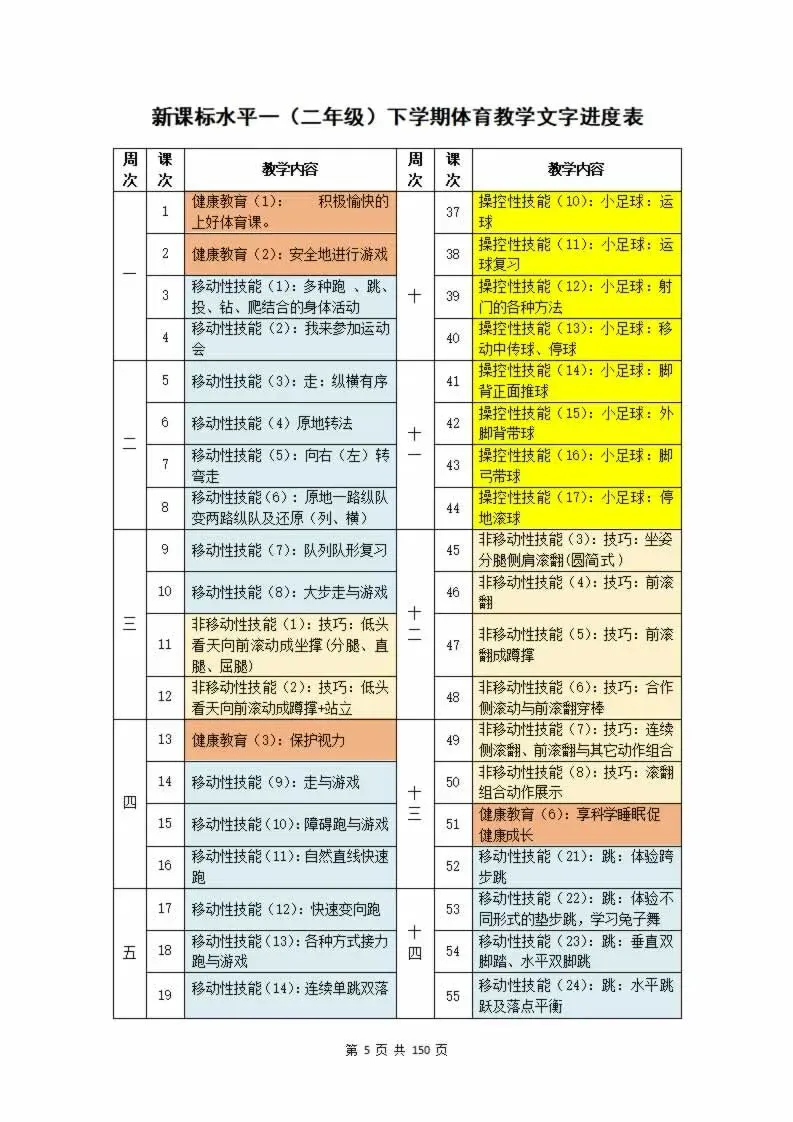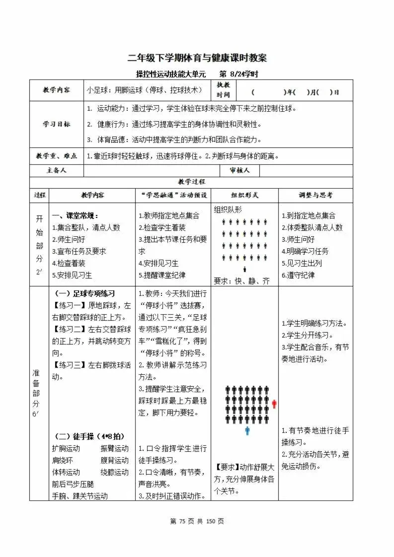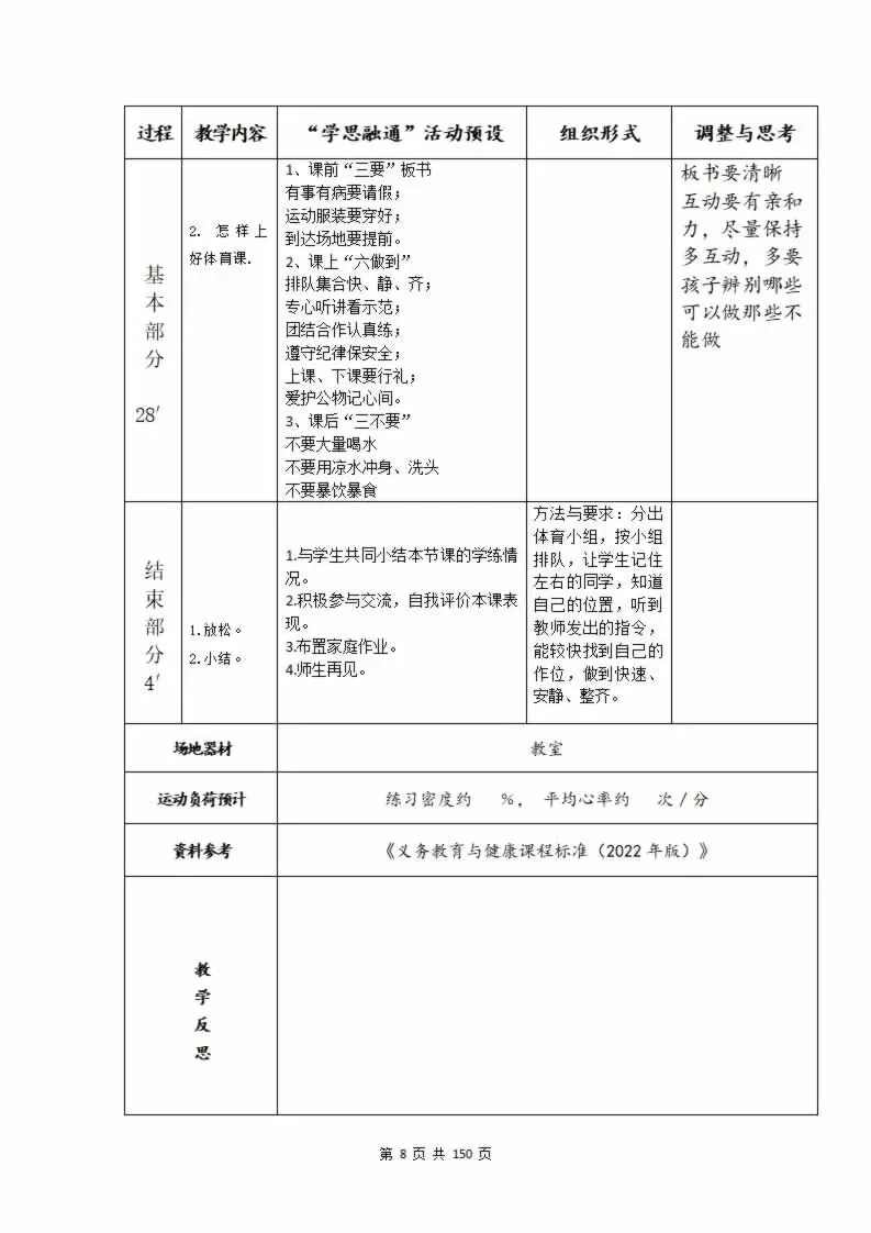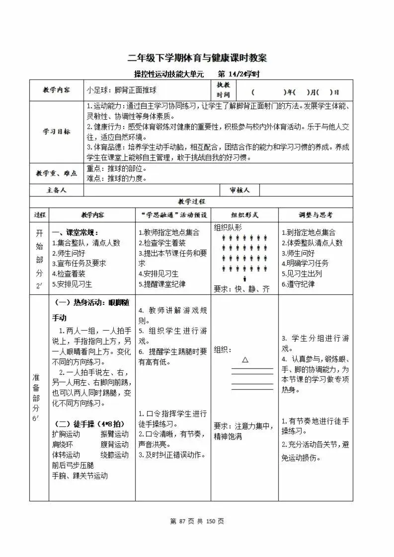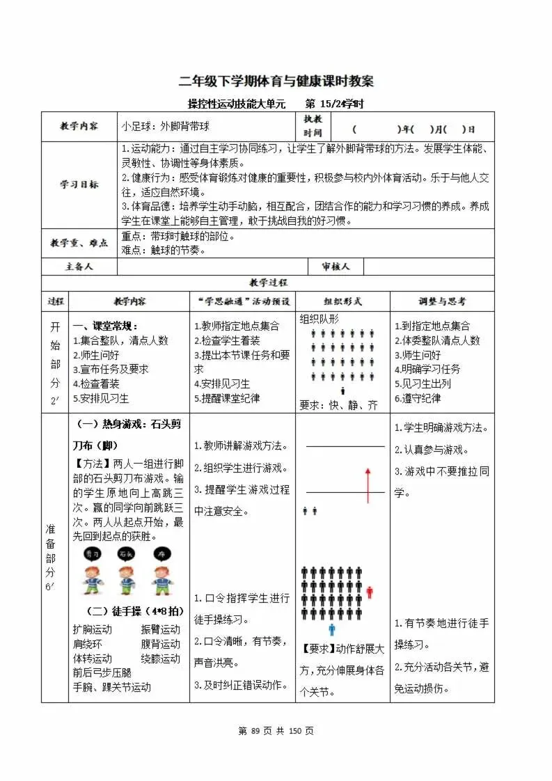 >150页新版体育与健康水平一二年级下册教案教学设计word版全册全学期