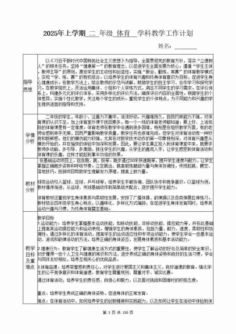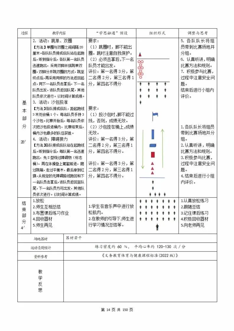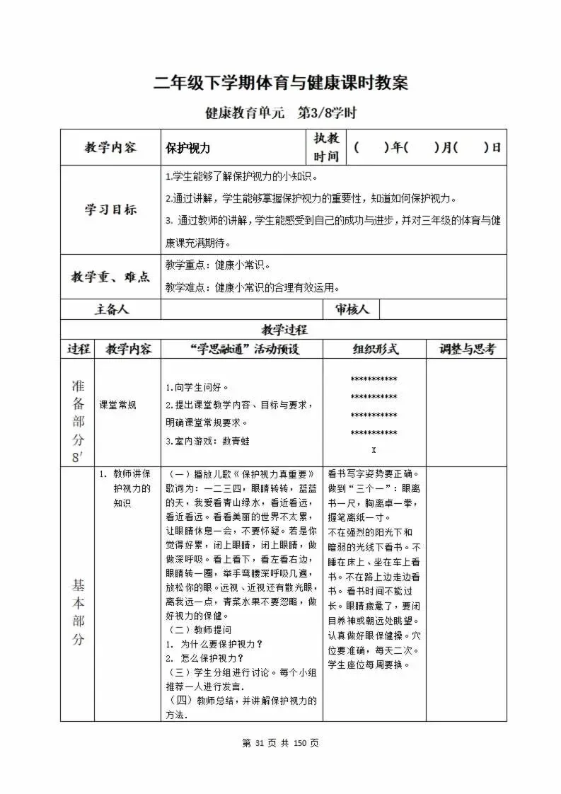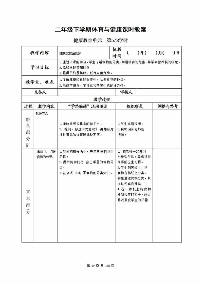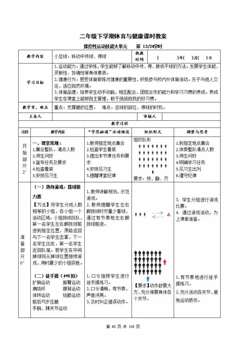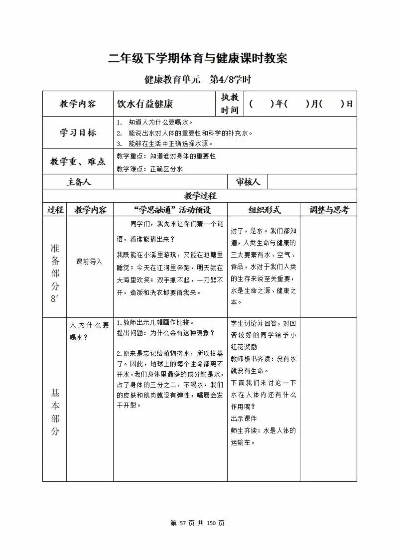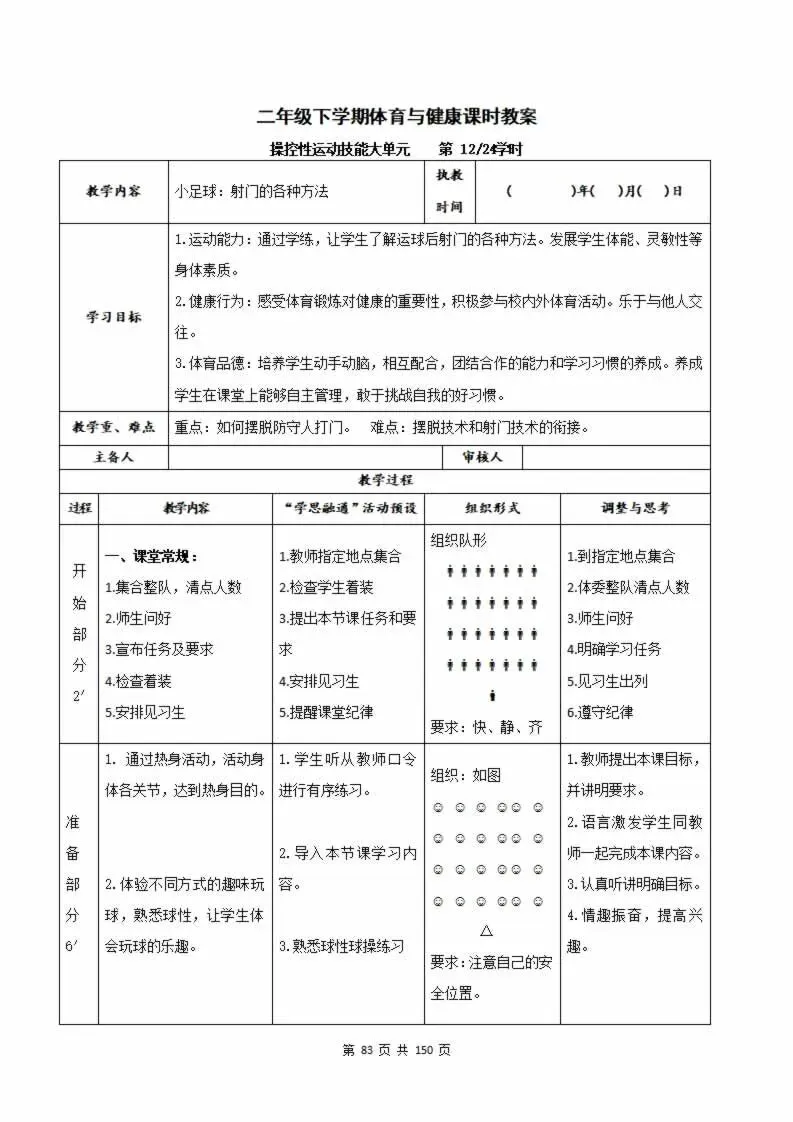 >150页新版体育与健康水平一二年级下册教案教学设计word版全册全学期