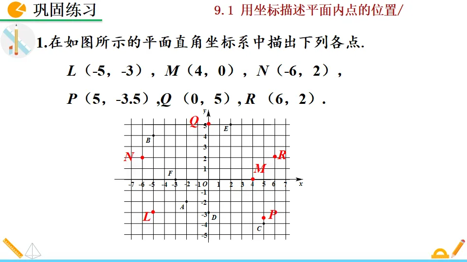 当前位置:首页>课件>平面直角坐标系的概念PPT教学课件用坐标描述平面内点的位置人教版数学七年级下册