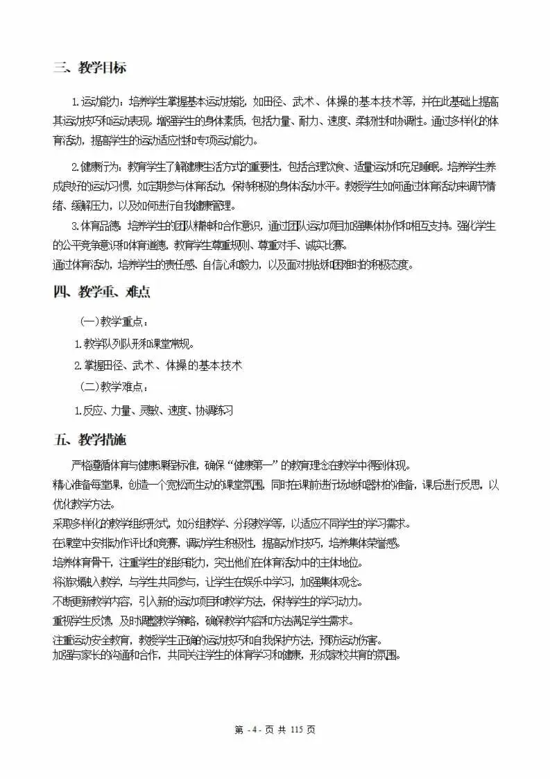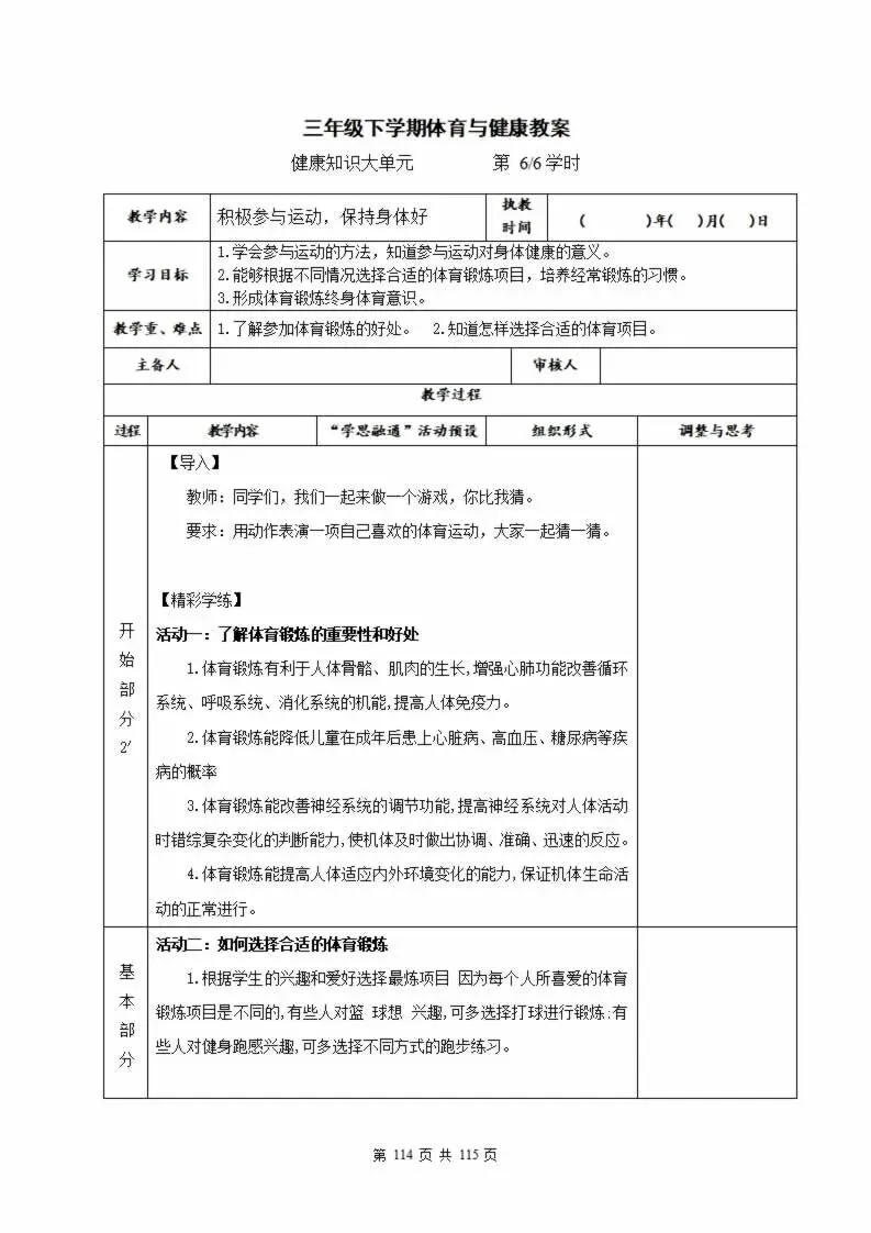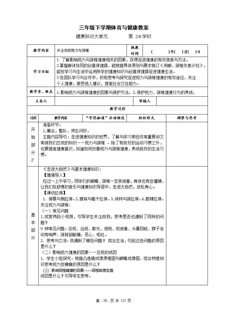 >115页新版体育与健康水平二三年级下册教案教学设计word版全册全学期