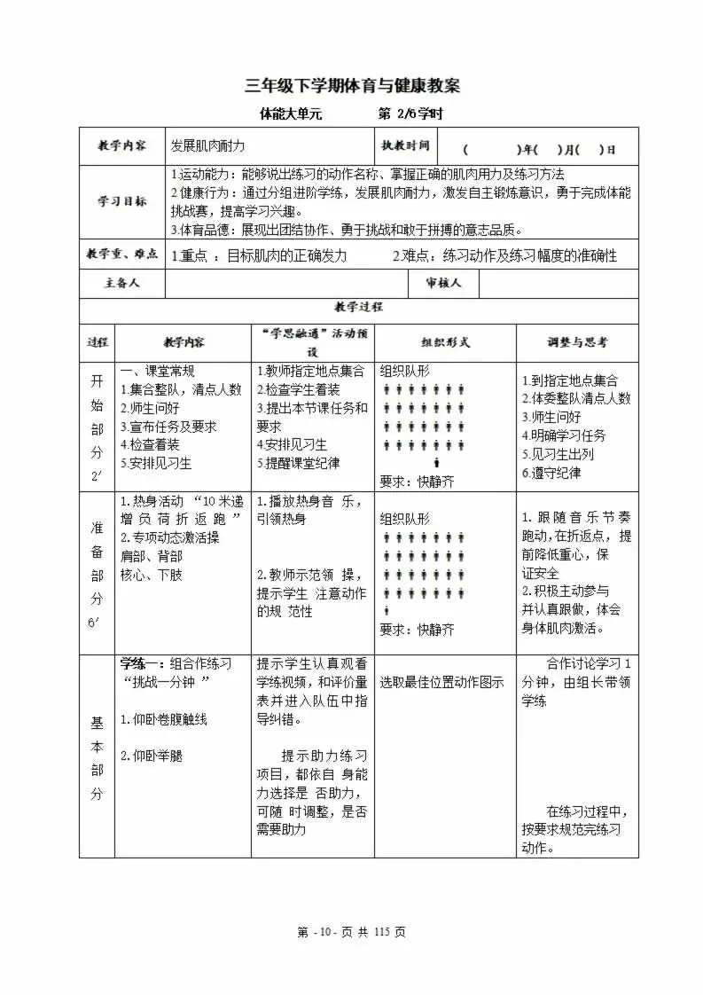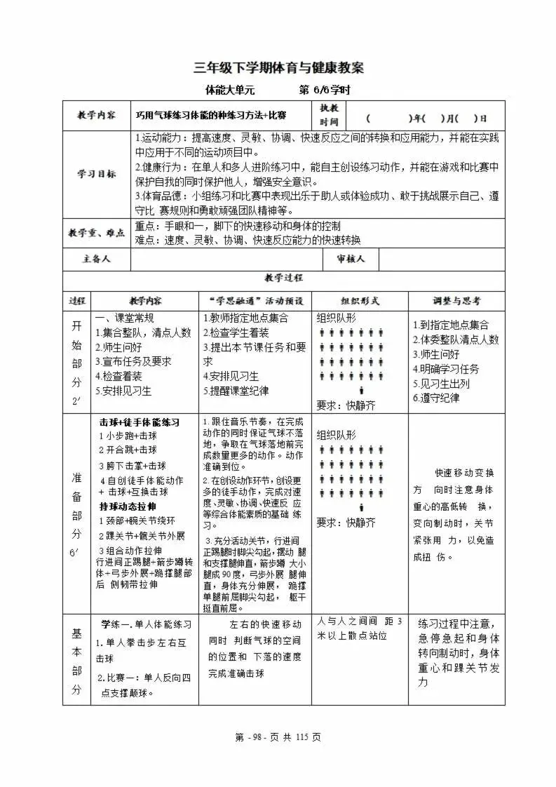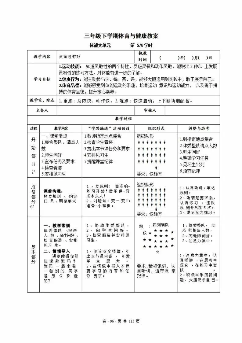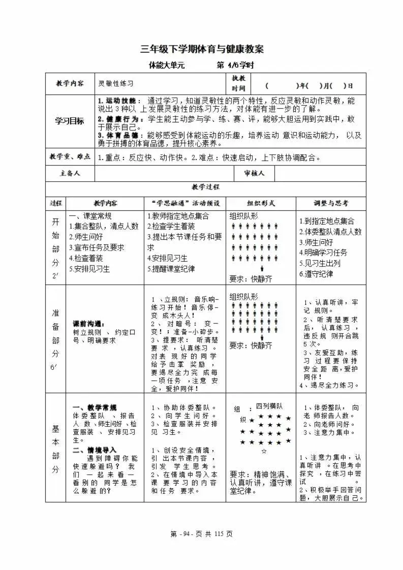 112页新版体育与健康水平三六年级下册教案教学设计word版全册全学期