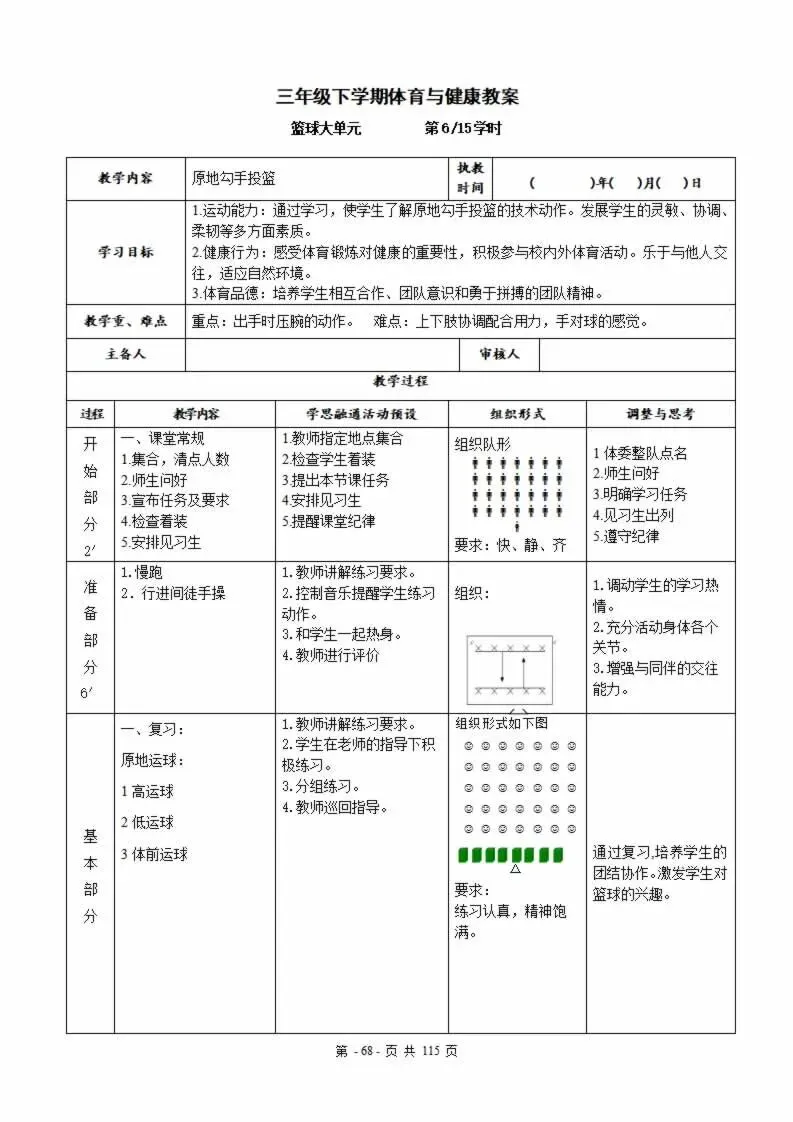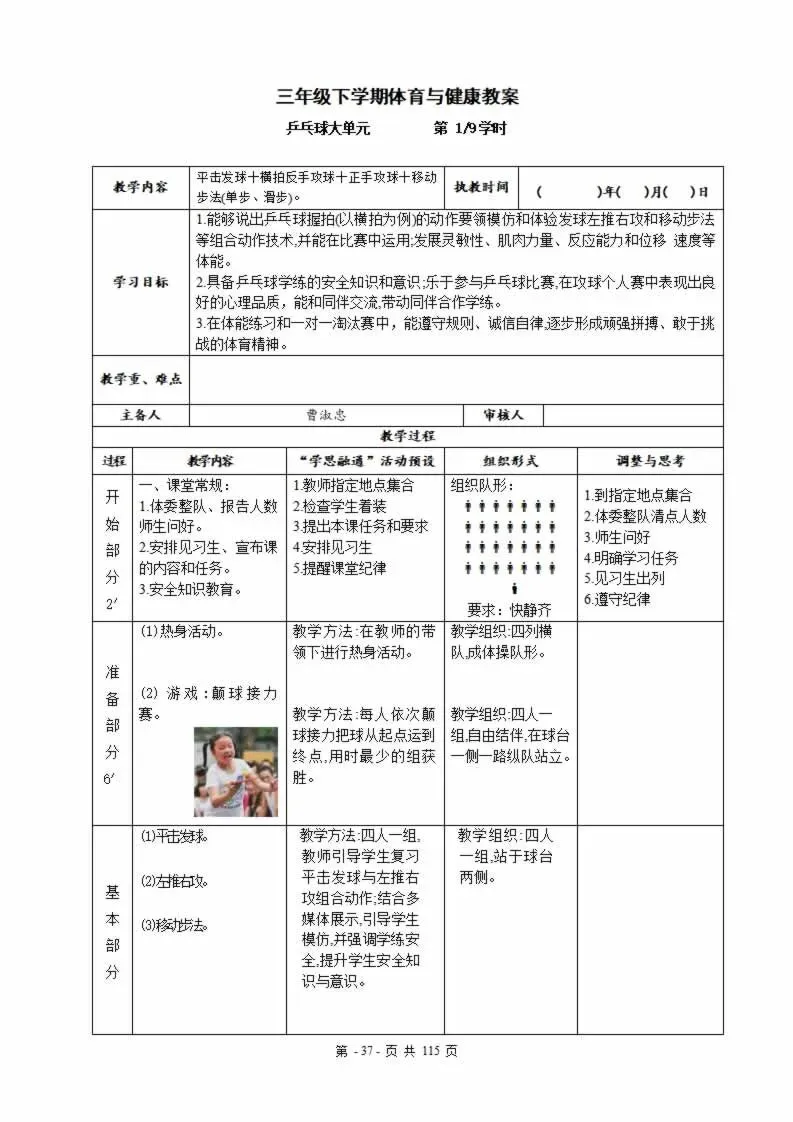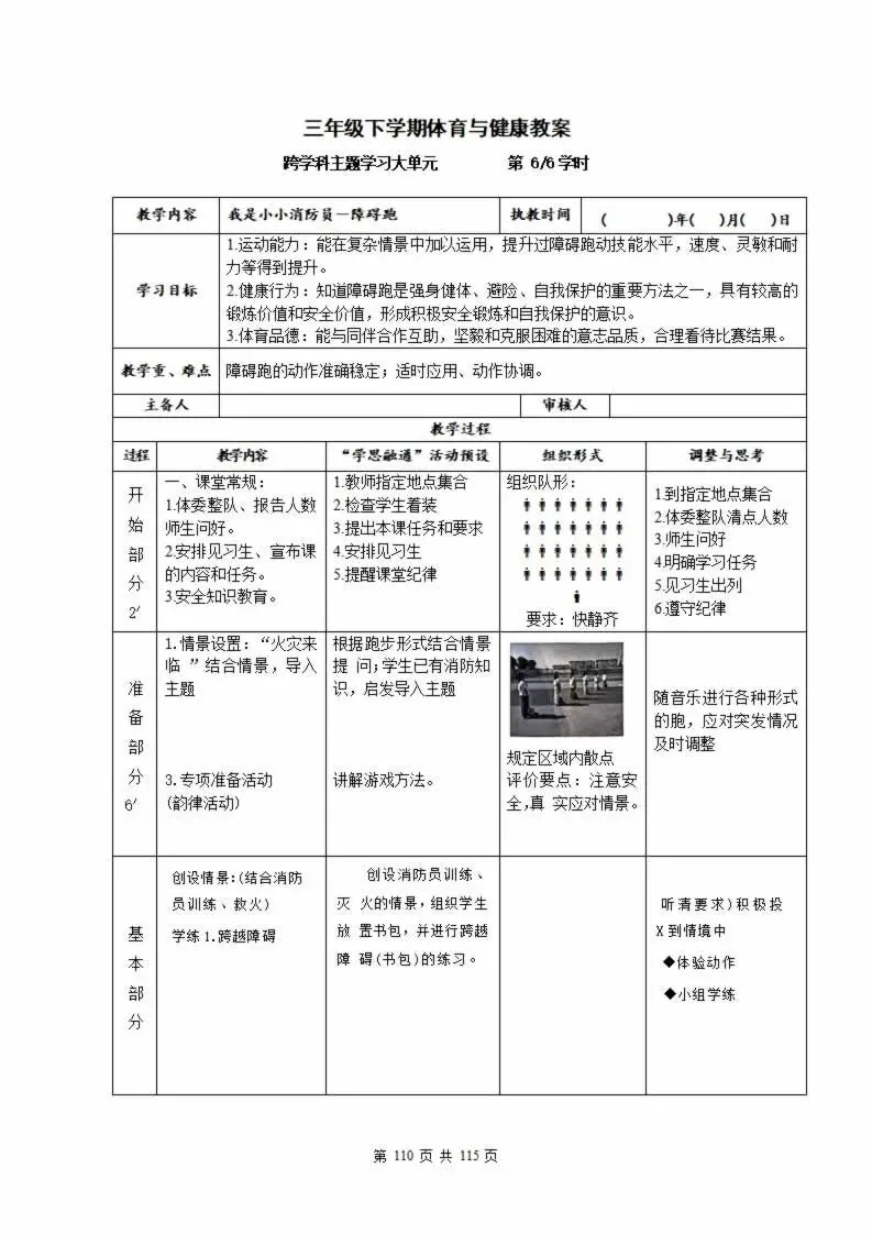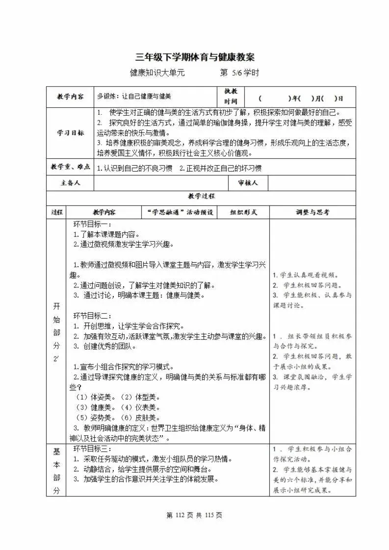 112页新版体育与健康水平三六年级下册教案教学设计word版全册全学期
