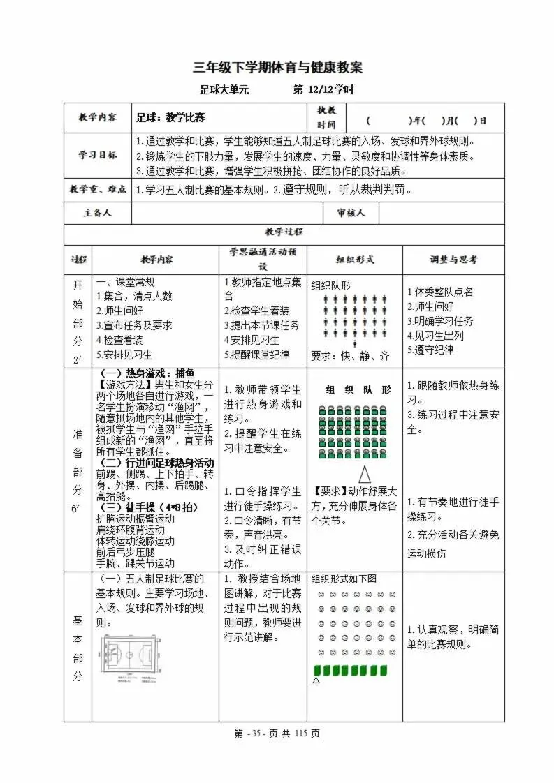 116页新版体育与健康水平三五年级上册教案教学设计word版全册全学期