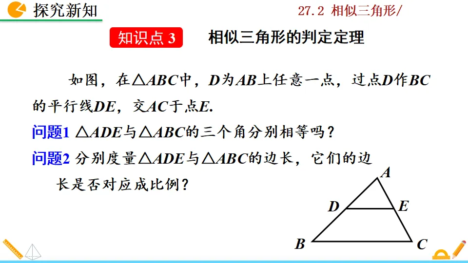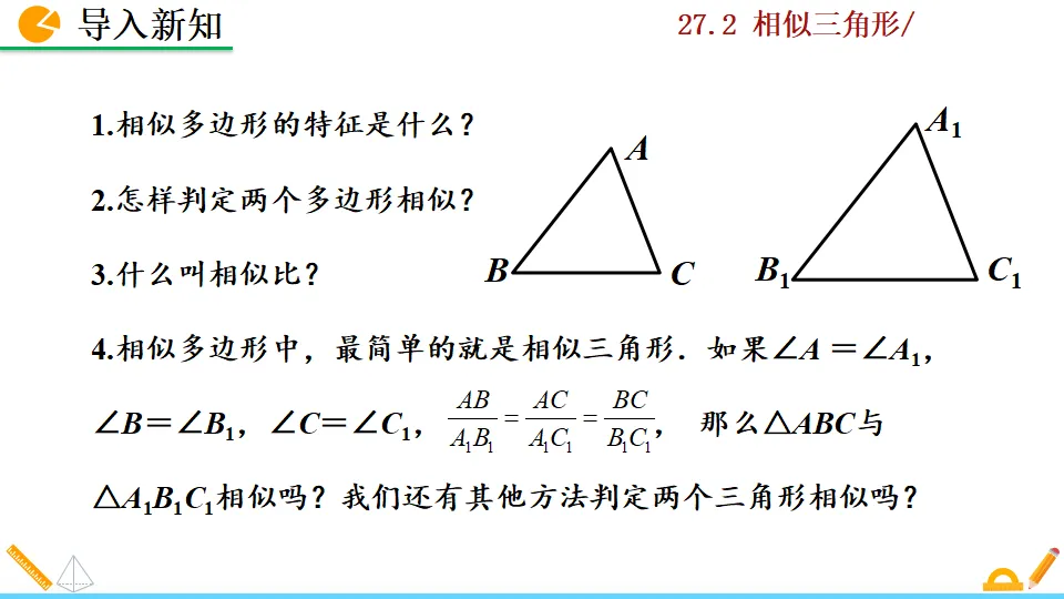 当前位置:首页>课件>相似三角形的判定第一课时PPT教学课件人教版数学九年级下册