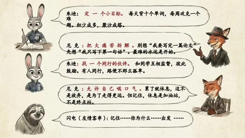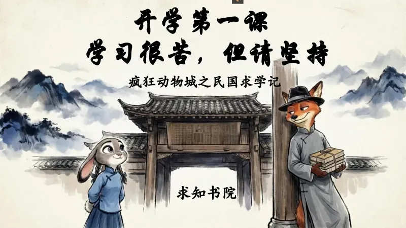 2026中小学通用开学第一课PPT课件(疯狂动物城版):《学习很苦,但请坚持》23页PPT+讲稿,朱迪,尼克变身好学的学霸~