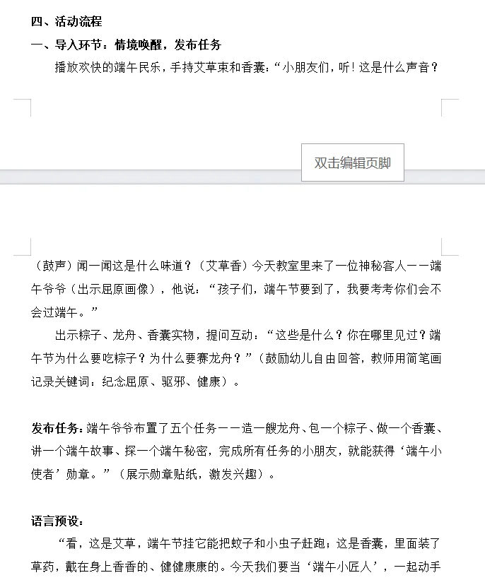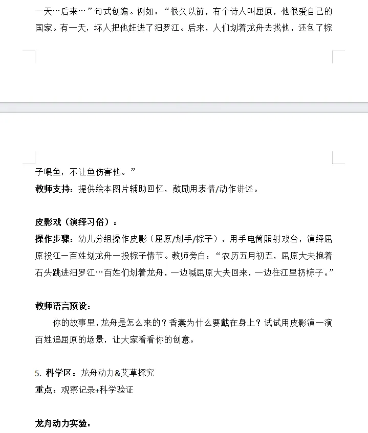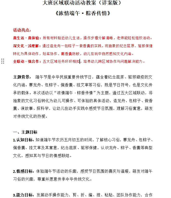 幼儿园大班区域联动活动教案(详案版)《浓情端午·粽香传情》8页 4562字‖ 幼儿园资源系列大全