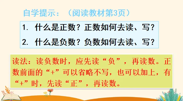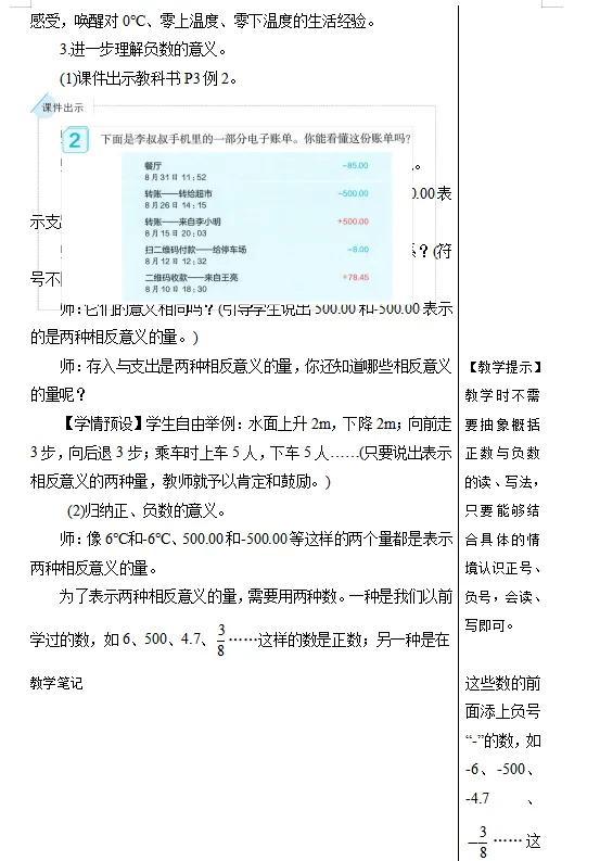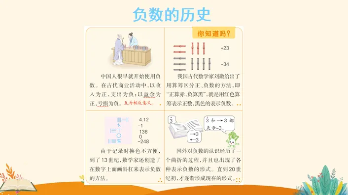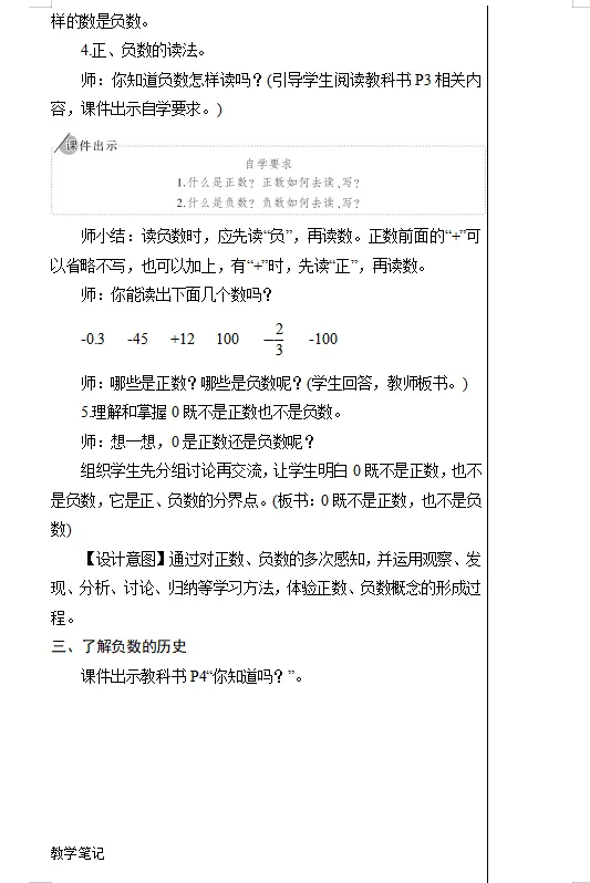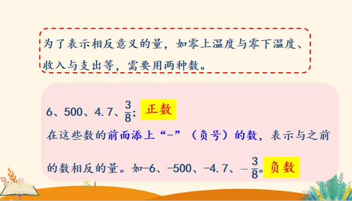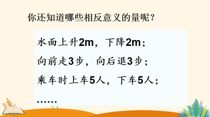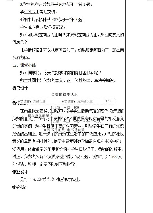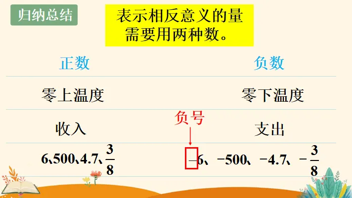 1.了解负数的意义,会用负数表示一些日常生活中的问题。