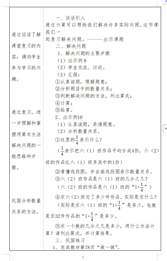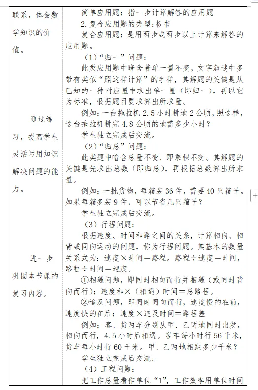 整理和复习单元是在完成小学数学的全部教学内容之后,引导学生对所学内容进行一次系统的、全面的回顾与整理,这是小学数学教学的一个重要环节。通过整理和复习,使原来分散学习的知识得以梳理,由数学的知识点串成知识线,由知识线构成知识网,从而帮助学生完善头脑中的数学认知结构,为初中的数学学习打下良好的基础;同时进一步提高学生综合运用所学知识分析问题和解决问题的能力。