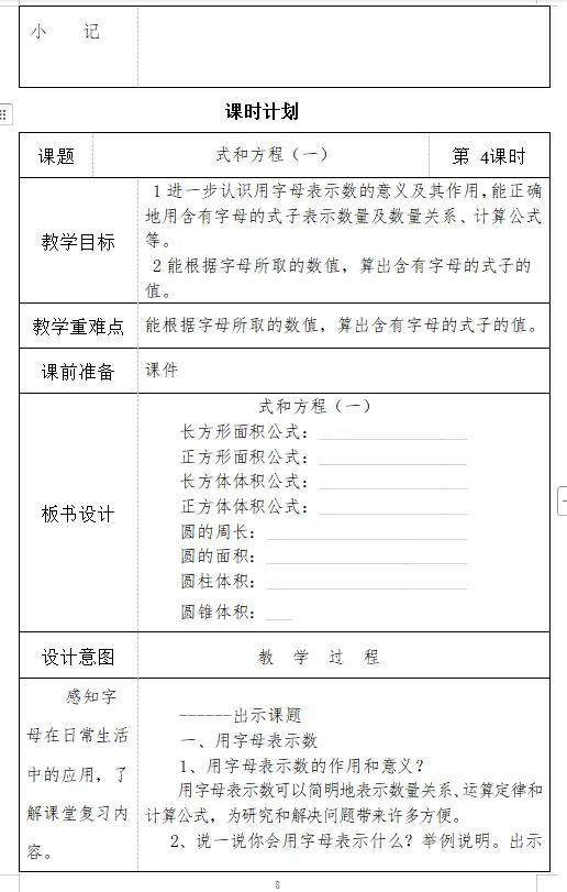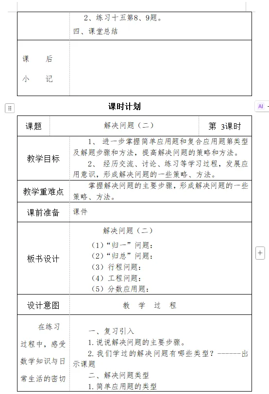 第十二周 | 整理和复习 | 1.式与方程(1) 2.式与方程(2) 3.比和比例 (1) 4.比和比例 (2) 5.练习课 | 5课时 机动1课时 |