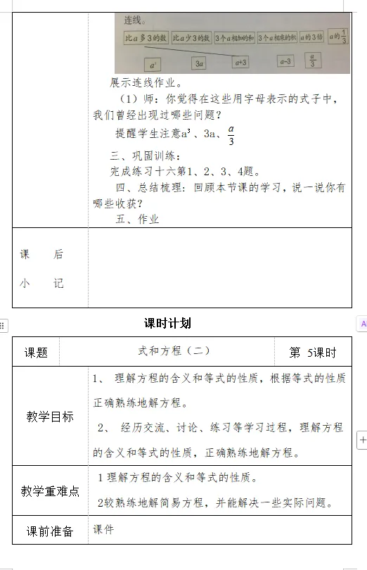 第十六周 | 整理和复习 | 1.数学思考(1) 找规律2.数学思考(2) 列表推理 3.数学思考(3) 等量代换 4.数学思考(4) 简单的几何证明 | 5课时 机动1课时 |
