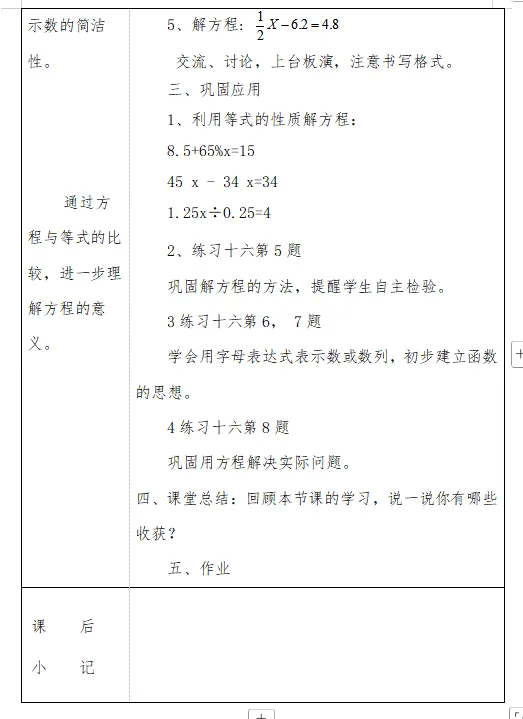 6.练习的安排,要由浅入深,体现层次性。对不同的学生,要有不同的要求和练习,对优生、学困生都要体现有所指导。增强数学实践活动,让学生认识数学知识与实际生活的关系,使学生感到生活中时时处处有数学,用数学的实际意义来诱发和培养学生热爱数学的情感。