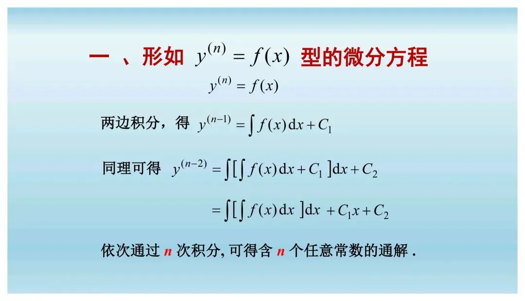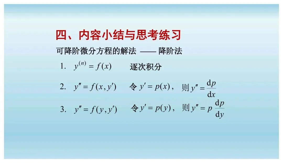 >高等数学下册同步教学课件|| 7.5 可降价的高阶微分方程