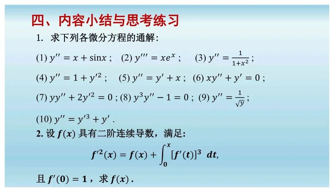高等数学下册同步教学课件|| 7.5 可降价的高阶微分方程