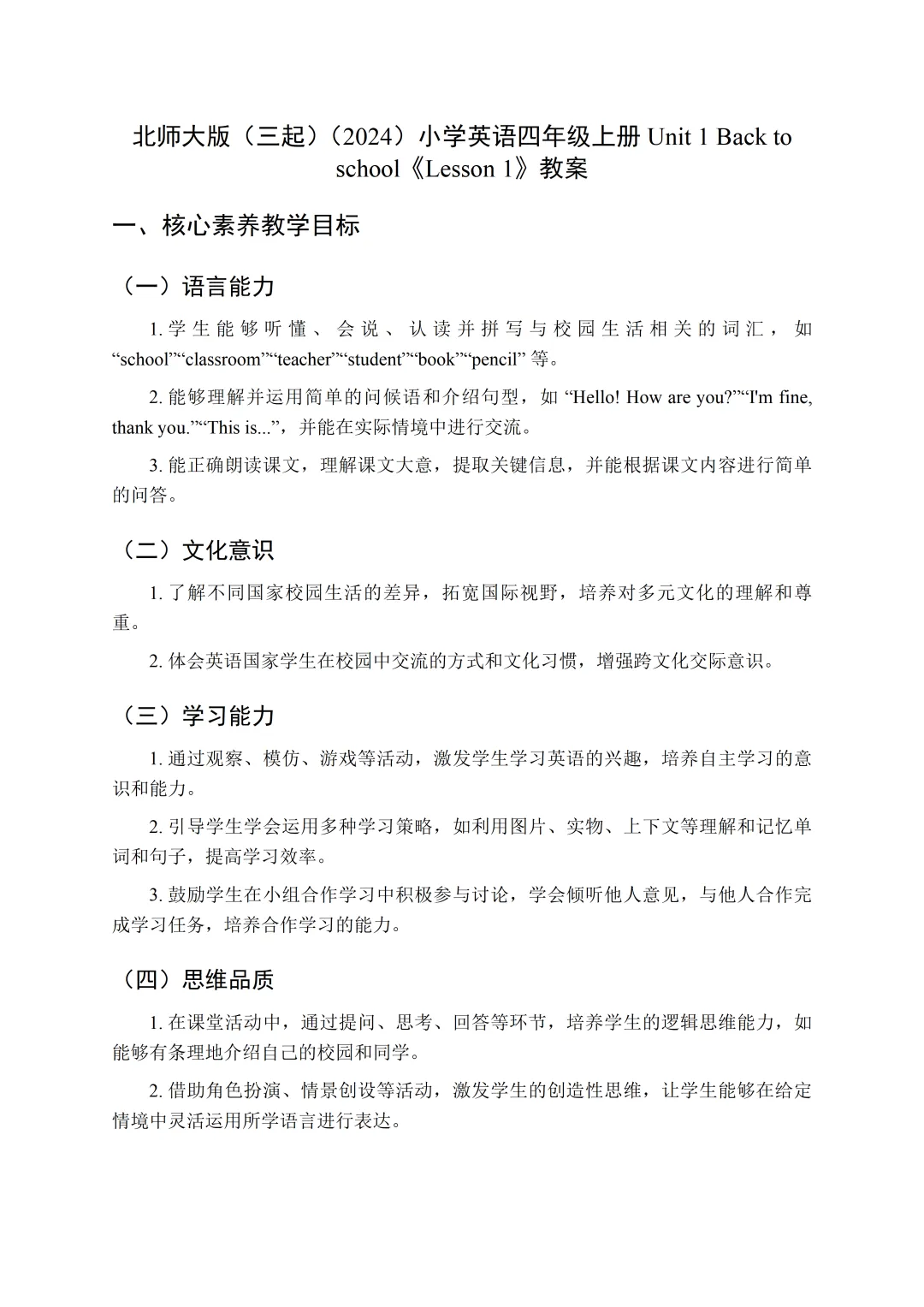 当前位置:首页>课件>2026-英语《北师大版》四年级上册-课件+核心素养教案(资料包)【新教材】,下载即用