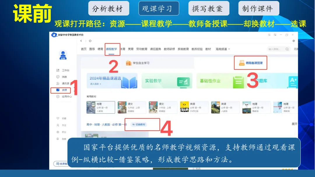 在推广国家中小学智慧平台实践过程中,我发现很多老师对平台往往会有抵触心理。所以我的入门讲座往往以通俗易懂的方式,带大家轻松解锁国家中小学智慧教育平台。平台资源丰富、实用免费,涵盖课前教材分析、教案课件制作,课中授课互动,课后作业布置等全流程教学场景,还支持双师课堂、教师研修等多元应用。我们将避开复杂操作,聚焦核心功能与实操技巧,帮大家快速上手,让平台成为备课授课好帮手。放下心理负担,一起拥抱教育数字化新工具! 课件以通俗讲解 + 实操演示,拆解课前教材分析、教案课件制作,课中授课互动,课后作业布置,还有双师课堂、教师研修等核心功能。跟着学就能快速上手,无需复杂操作,让平台成为备课授课好帮手。