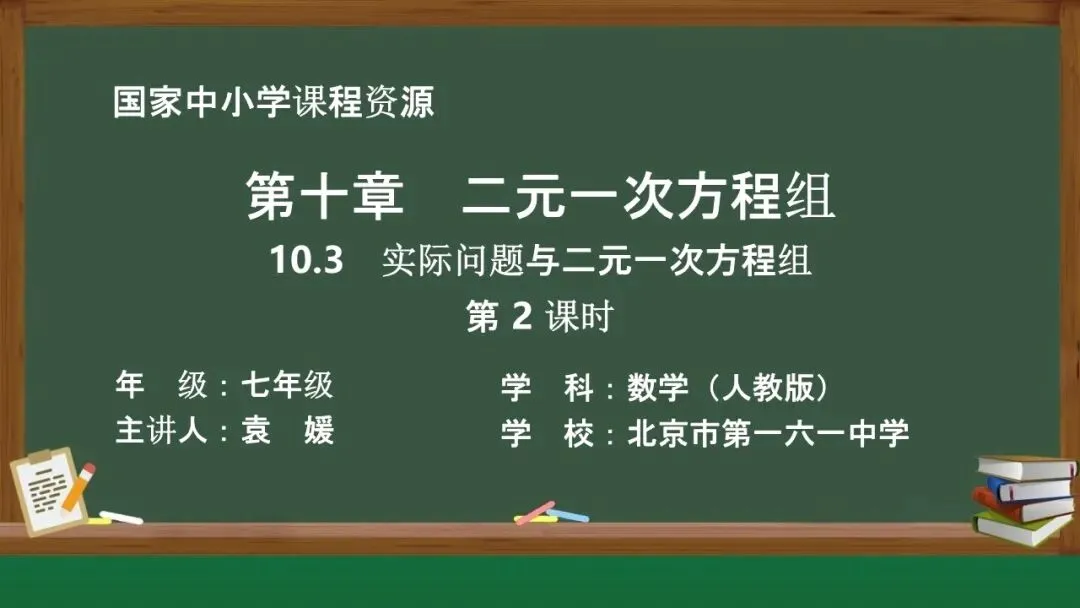当前位置:首页>课件>【教学课件】(新教材)人教版初中数学七年级下册《10.3 实际问题与二元一次方程组》第2课时