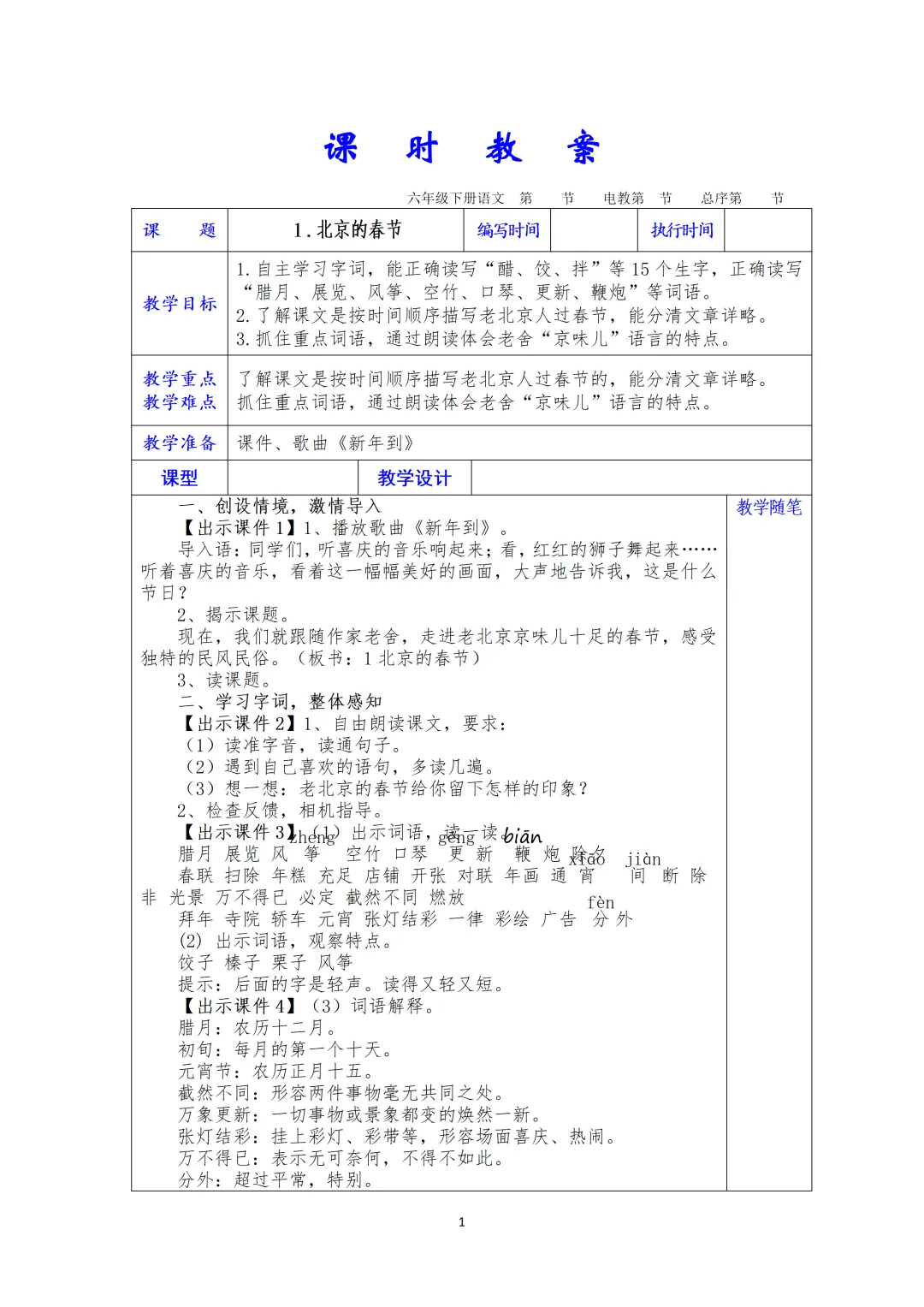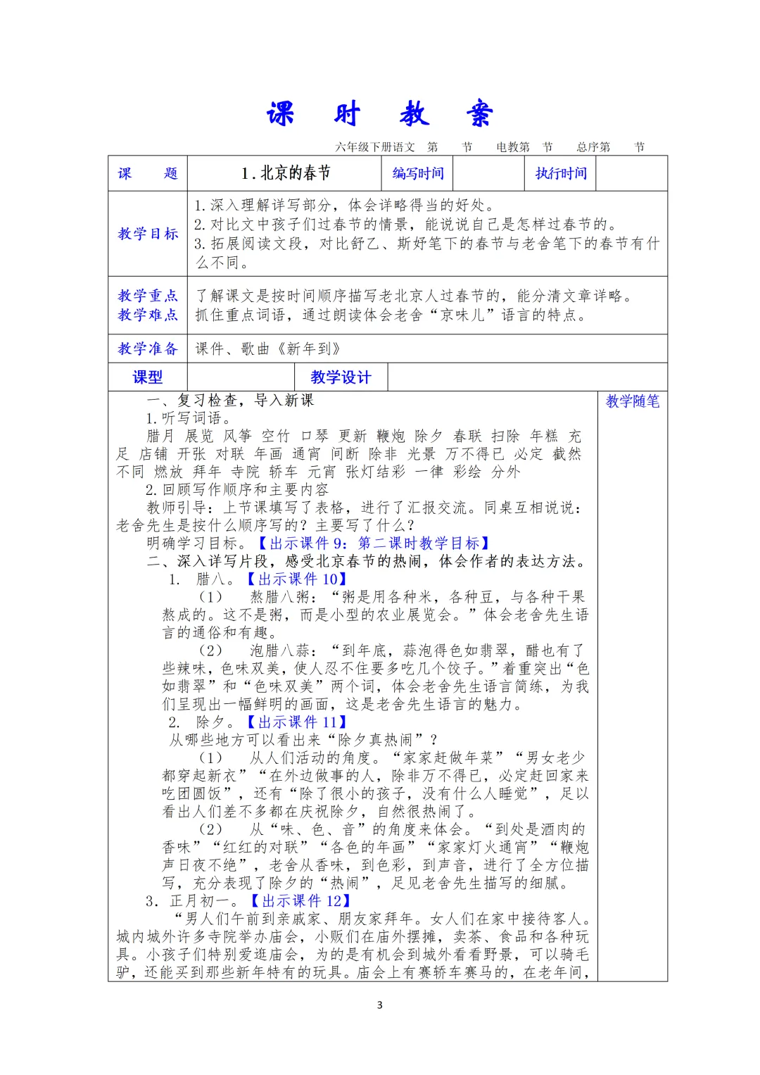 习作:家乡的风俗 | 单元整体教学 | 语文园地 |