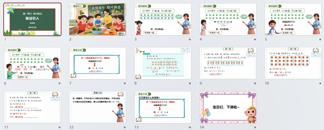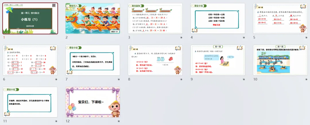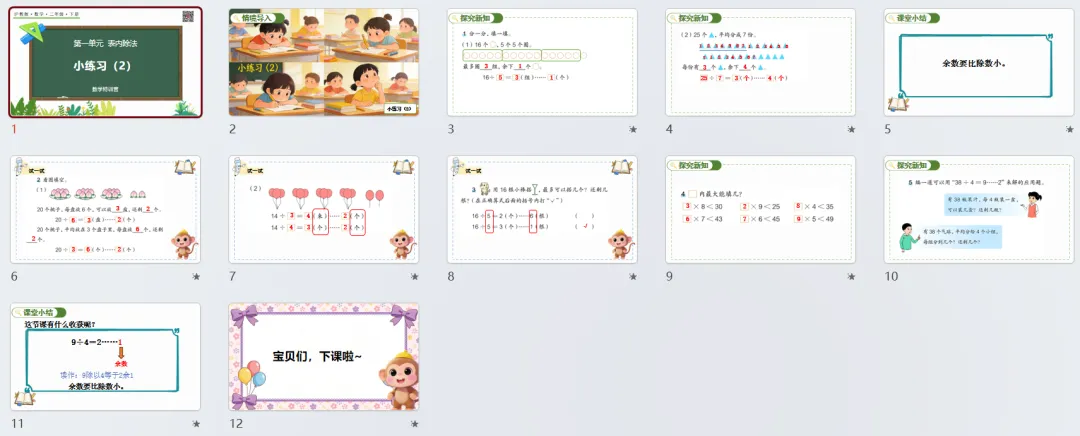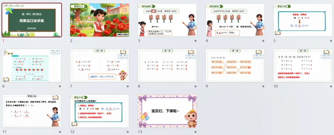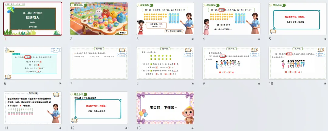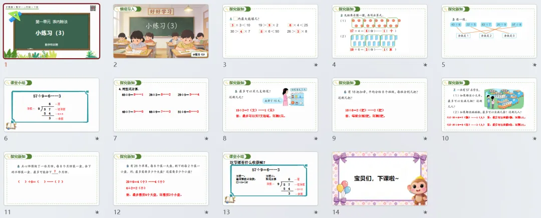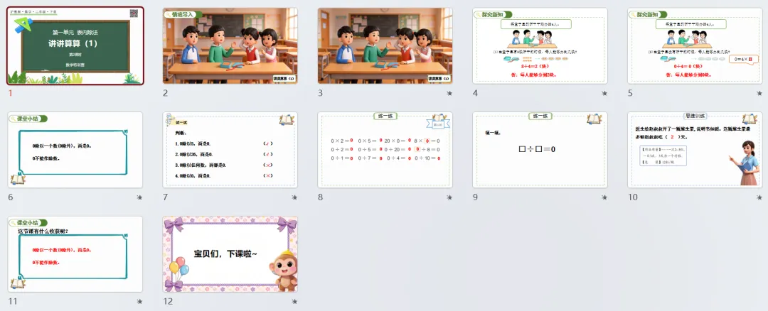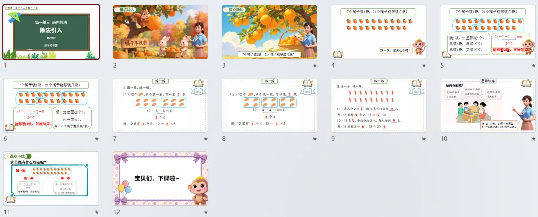 本讲知识预告:新沪教版二年级下册第一单元《表内除法》课件、教案、周周练。