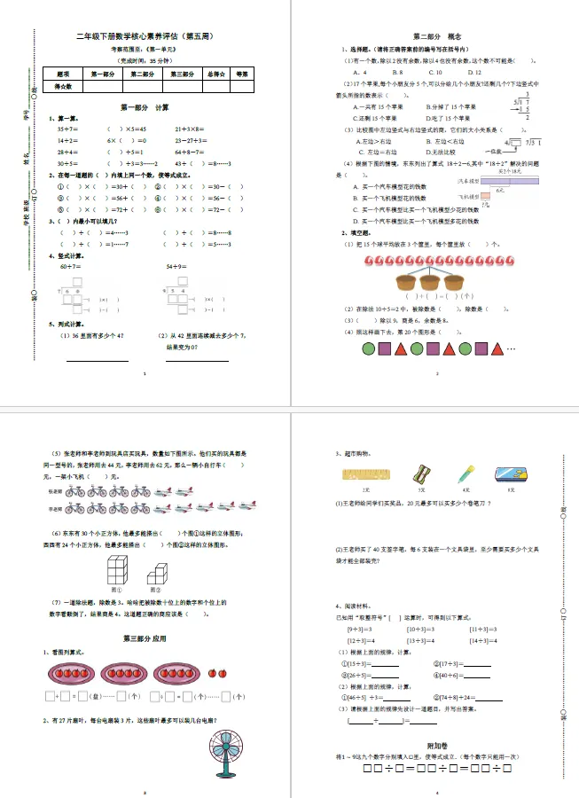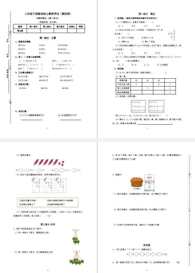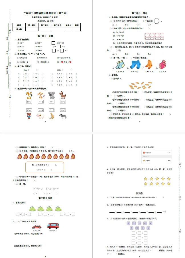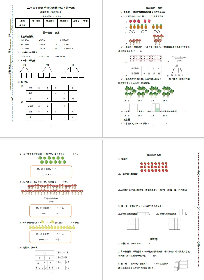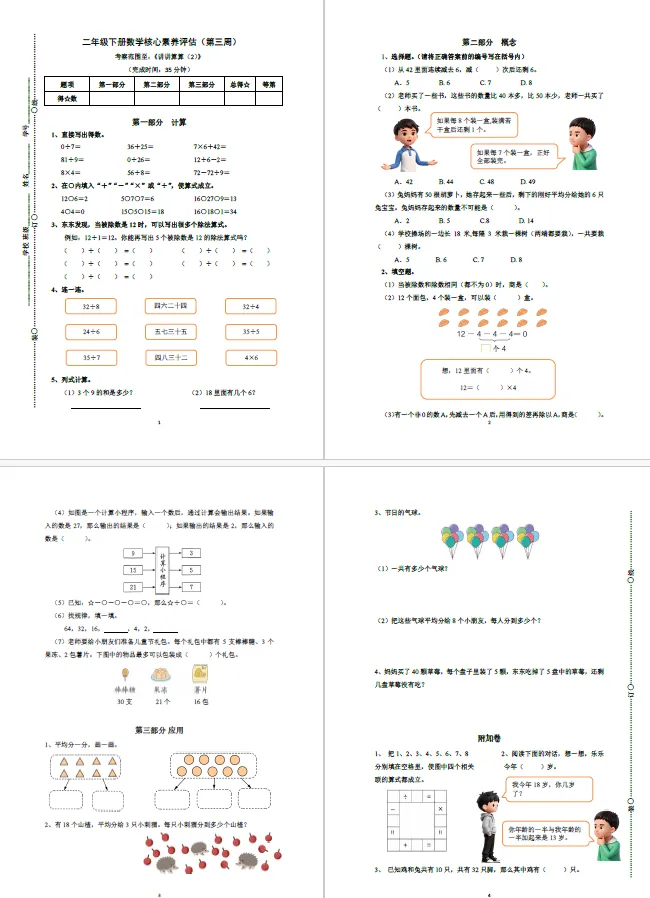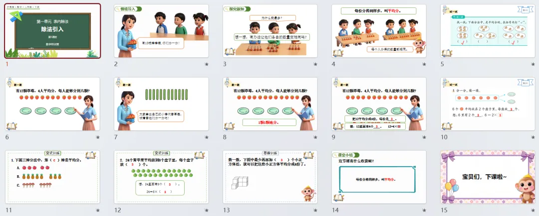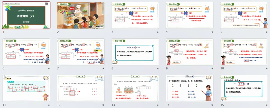 本讲知识预告:新沪教版二年级下册第一单元《表内除法》课件、教案、周周练。