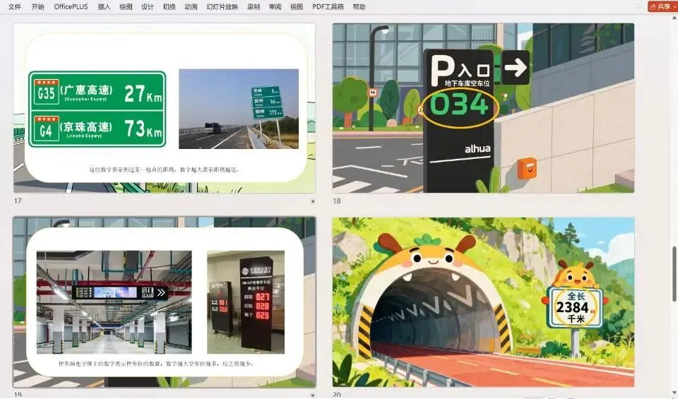 红绿灯倒计时——“它告诉我们还要等多久,没有它会撞车!”限高标志3米——“大卡车太高就不能过,不然会撞头!”服务区距离2km——“告诉司机叔叔再开一会儿就能休息了!”停车场空位34——“爸爸就知道有没有位置,不用白跑一趟!”隧道长度2384米——“提醒司机要开很久,先开车灯!”🎯 【设计小心机】 小组讨论+代表发言,每个孩子都在动脑、动口,合作学习自然发生。第五幕:分类送回家