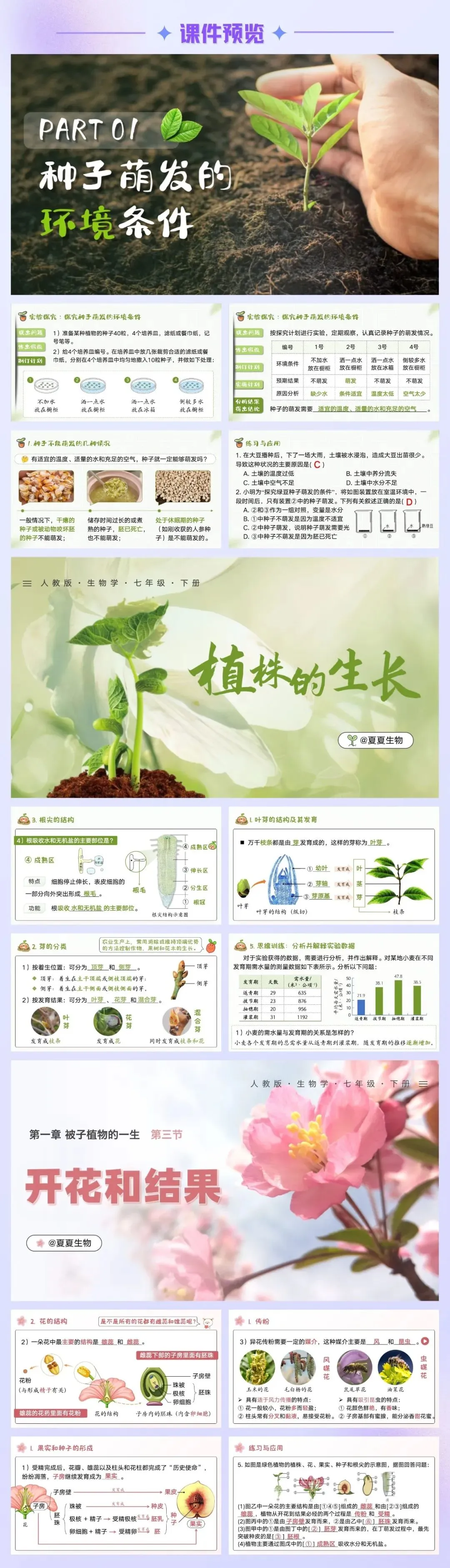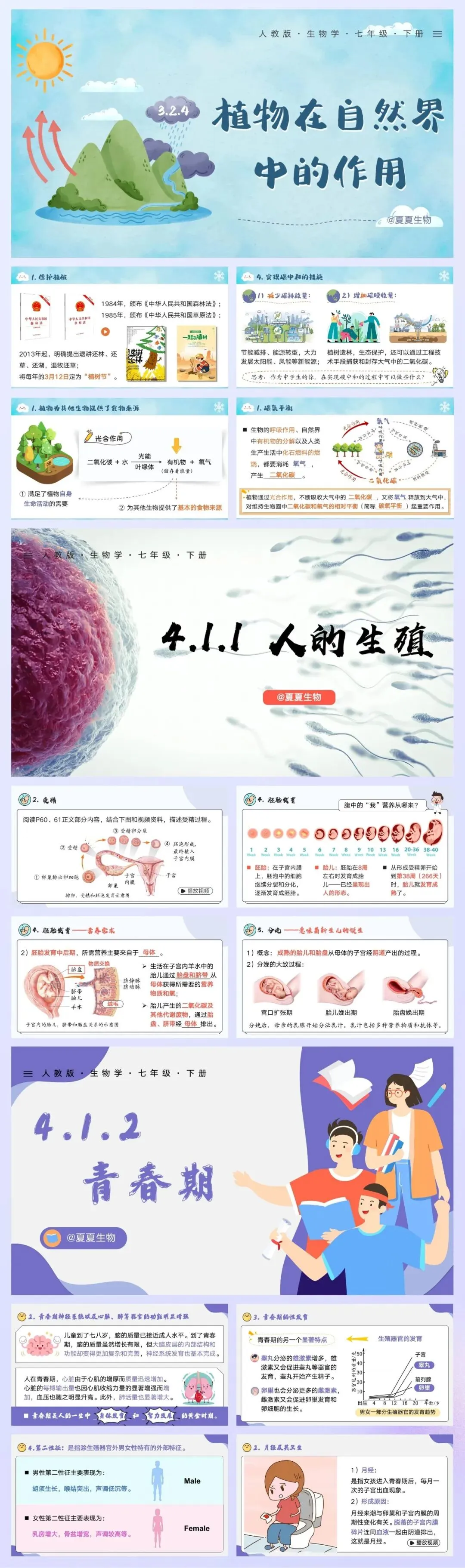 人教版新教材七下生物,内容包含课件、教案、教学视频、讲课逐字稿,现在购买赠送默写小纸条、10套章节过关卷、9套押题卷!进Vip交流群!相比于能直接拿来用的课件,教学视频和讲课逐字稿才是夏夏的心血所在,更是多年教学经验沉淀的吐血总结!