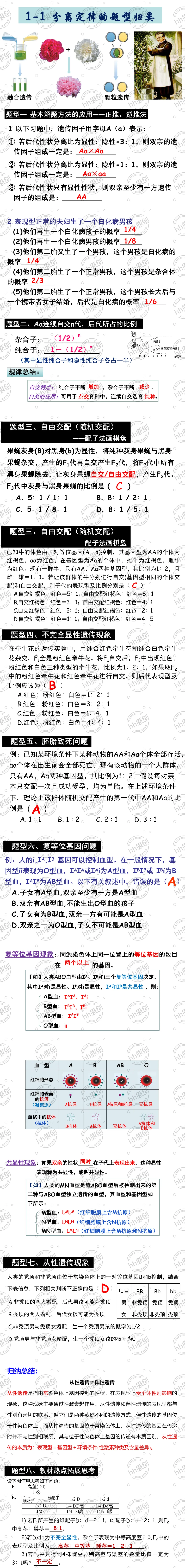 孟德尔的豌豆杂交实验(一)新授课课件及学案+习题课课件(自用原创)