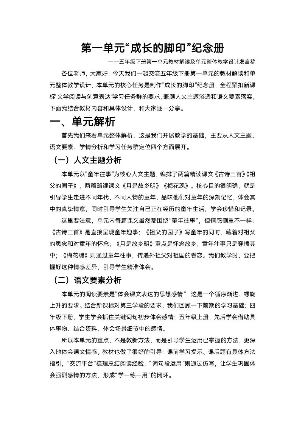 >2026新五年级下册第一单元大单元解读课件+发言稿+大单元教学设计