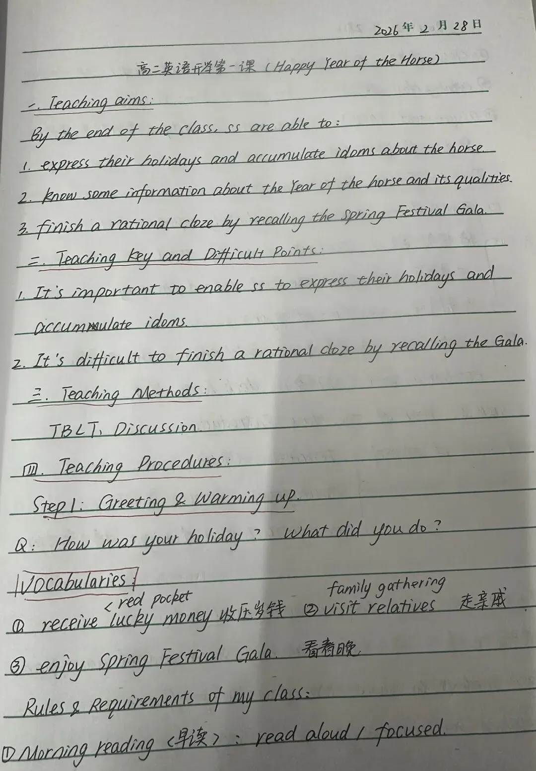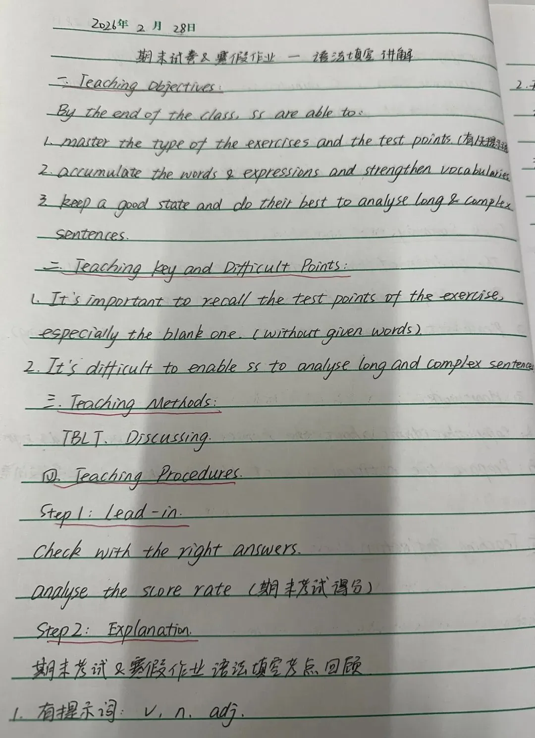 6.落实好本学期的3次英语周考,提前两周出好试卷并且审核好,及时批改反馈和试卷讲评。